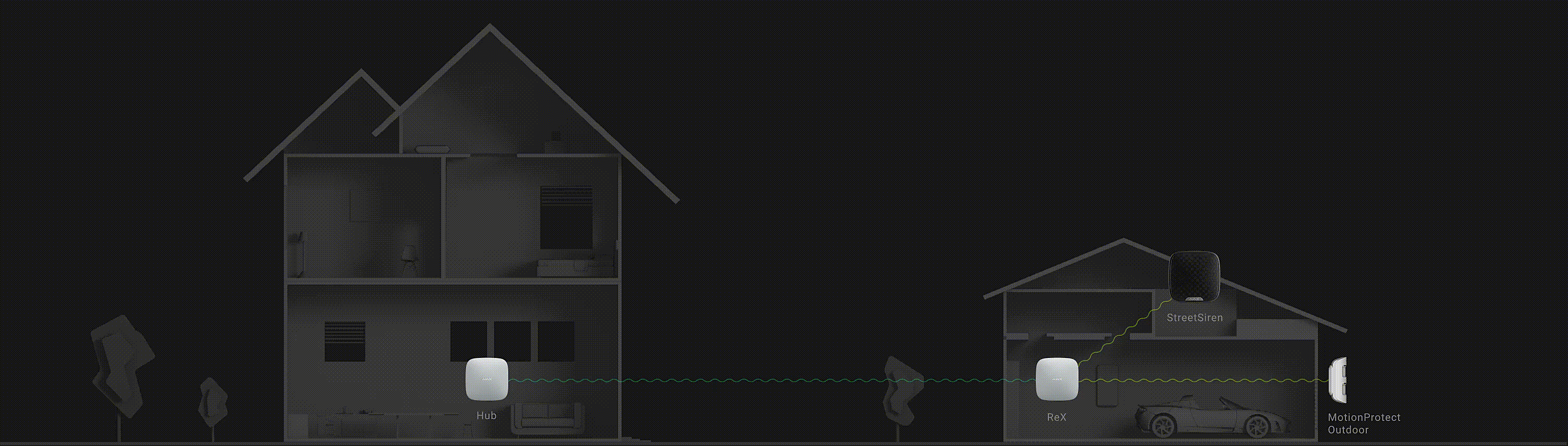 A instalação de extensores de alcance regulares pode aumentar o risco de perder o sinal de alarme durante a transmissão - assim eles se tornam o elo mais fraco dos sistemas de segurança. Mas o ReX leva a confiabilidade e a resiliência do Ajax a um novo nível. Depois do hub, o ReX é o segundo centro de tomada de decisões. Ele integra detectores em um grupo autónomo dentro do sistema. Se a conexão com o hub for interrompida por algum motivo, o ReX assumirá o controle: e receberá um sinal de alarme do detector e ativando a sirene para atrair a atenção para o incidente e afugentar os intrusos.