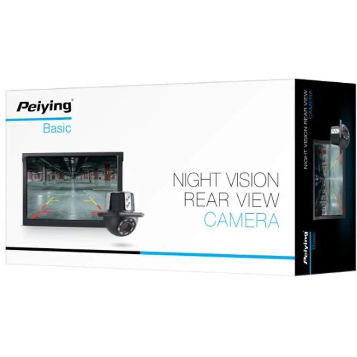 A câmera de marcha-atrás Peiying com uma resolução de 628x586px. Possui um amplo ângulo de visão de 140 °, permitindo a visualização de obstáculos fora do alcance dos espelhos retrovisores. O sistema iniciará automaticamente exibindo no ecrã quando a marcha-atrás for accionada, além da imagem da câmera as linhas guias facilitarão significativamente todas as manobras. Uma vantagem adicional do dispositivo é a possibilidade de montá-lo na frente e na traseira do carro - decida por si mesmo onde mais precisa!