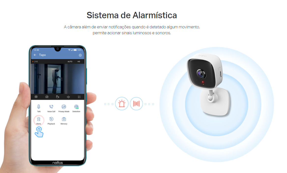 ✅ Alarme de sonoro e luminoso: aciona efeitos luminosos e sonoros para assustar visitantes indesejados.
