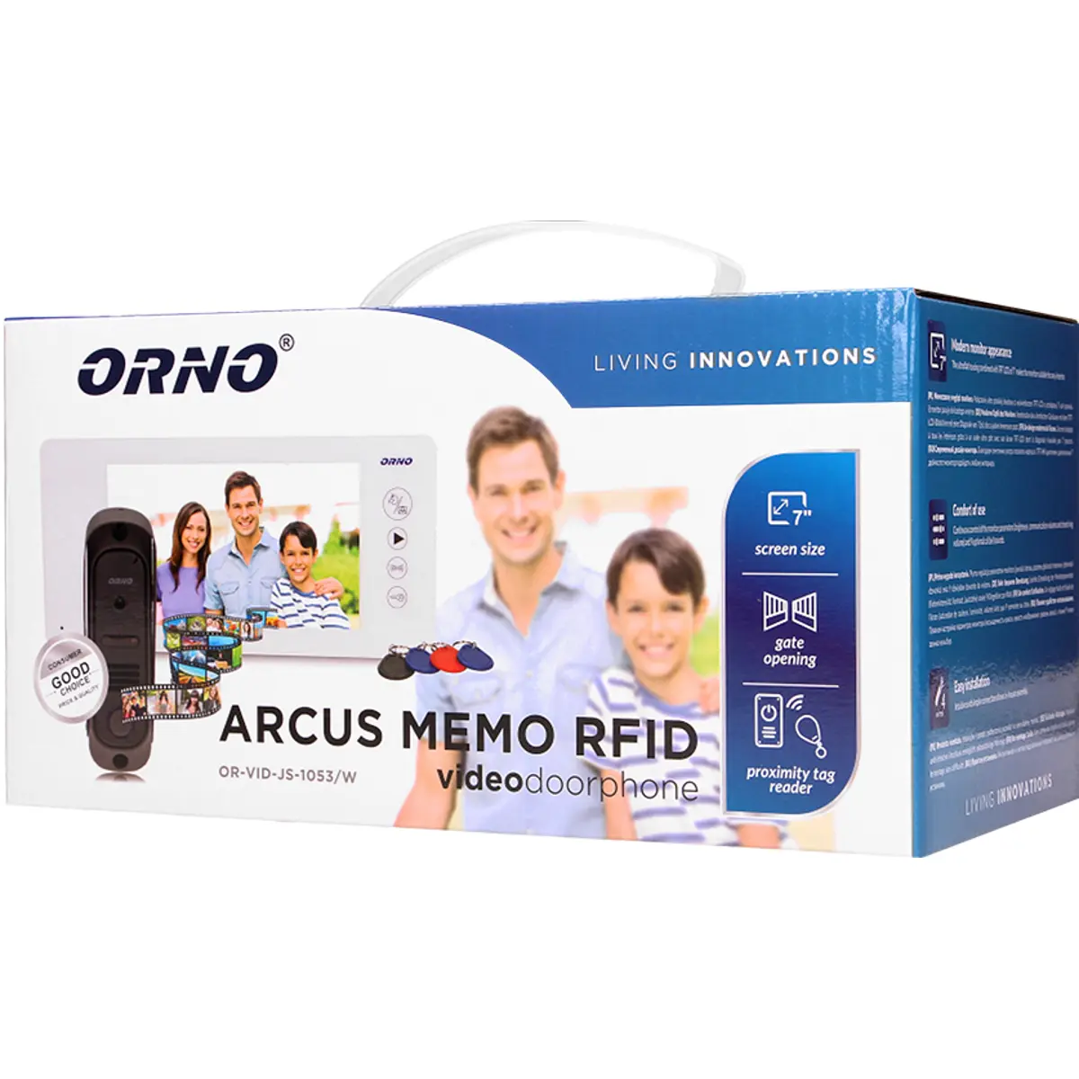 Video-porteiro moderno equipado com um monitor LCD ultrafino com ajuste suave de parâmetros (brilho, volume de conversação e toque), 9 toques selecionáveis, um painel de toque com botões iluminados e uma função de controle de portão adicional.