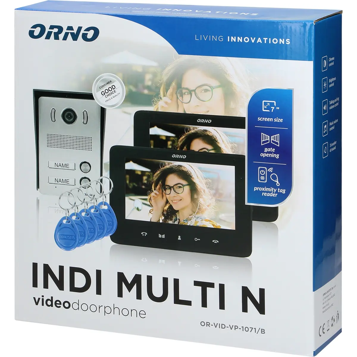 Este conjunto de videoporteiro inclui dois monitores LCD de 7" a cores ultra plano com um painel de toque e botões iluminados. Os parâmetros do monitor (brilho e cor, volume da fala e do toque) podem ser ajustados. Com 16 melodias para escolha.