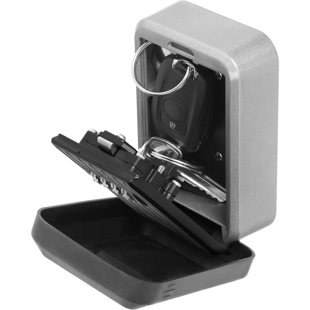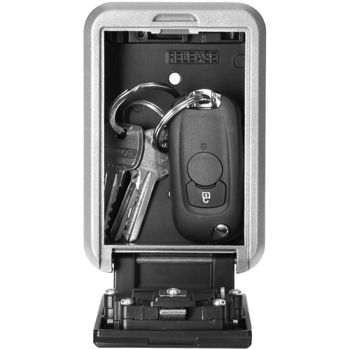 Cofre de chave compacto adequado para montagem na parede, tanto para interior como exterior . Este cofre é uma ótima solução quando deseja deixar suas chaves em um local seguro. A fechadura de 4 dígitos oferece 10.000 combinações possíveis do código e o mecanismo utilizado evita tentativas de quebrar o painel frontal. Os materiais utilizados, principalmente a capa de borracha, garantem que o produto resista por muito tempo às intempéries. Parafusos de montagem incluídos.