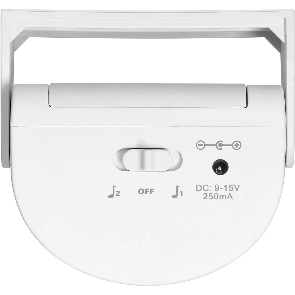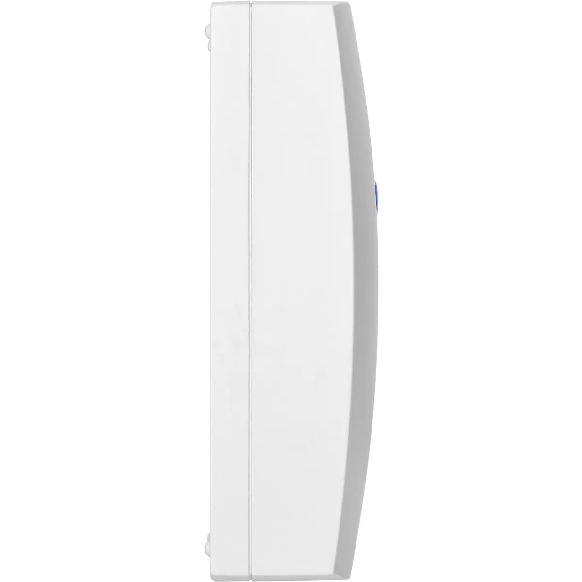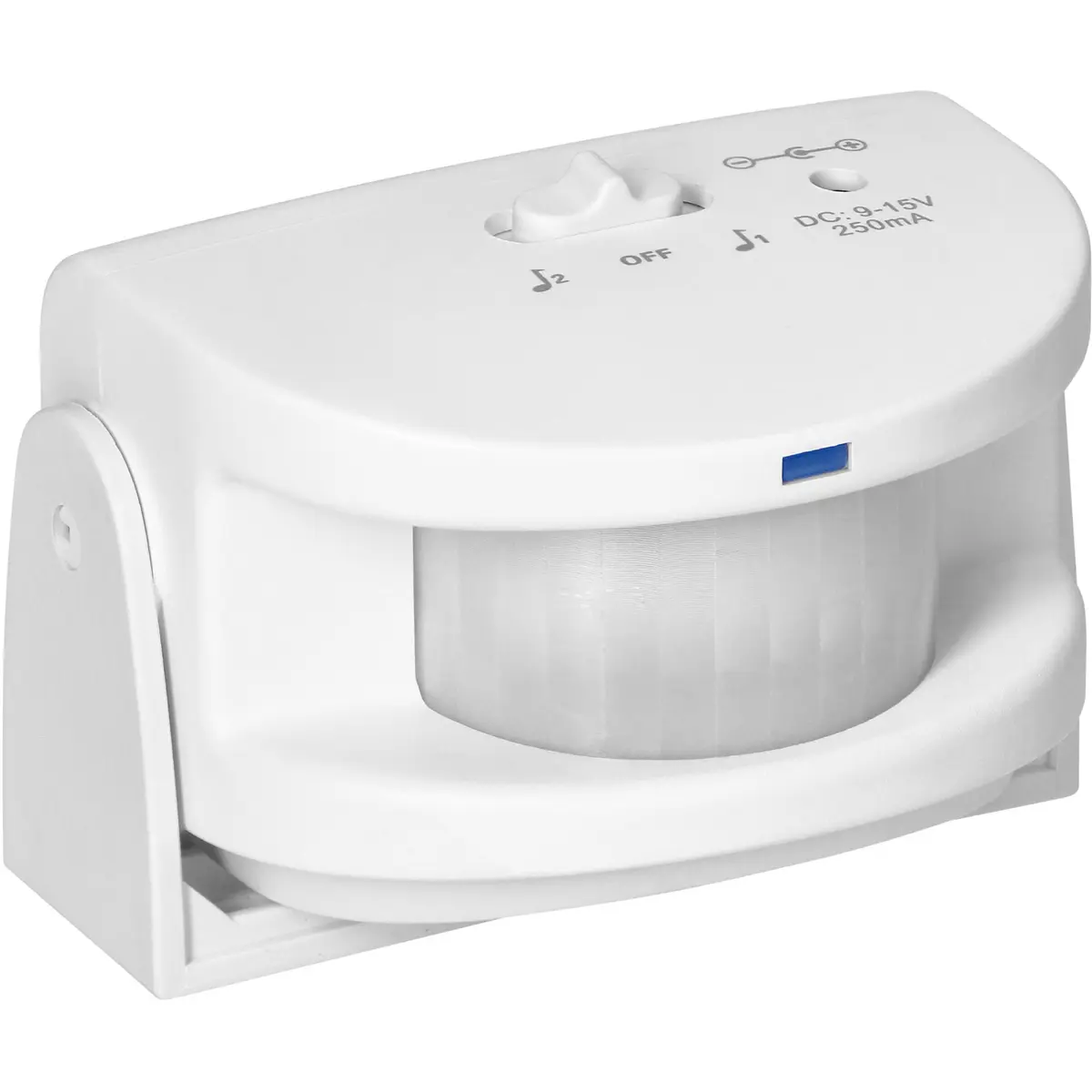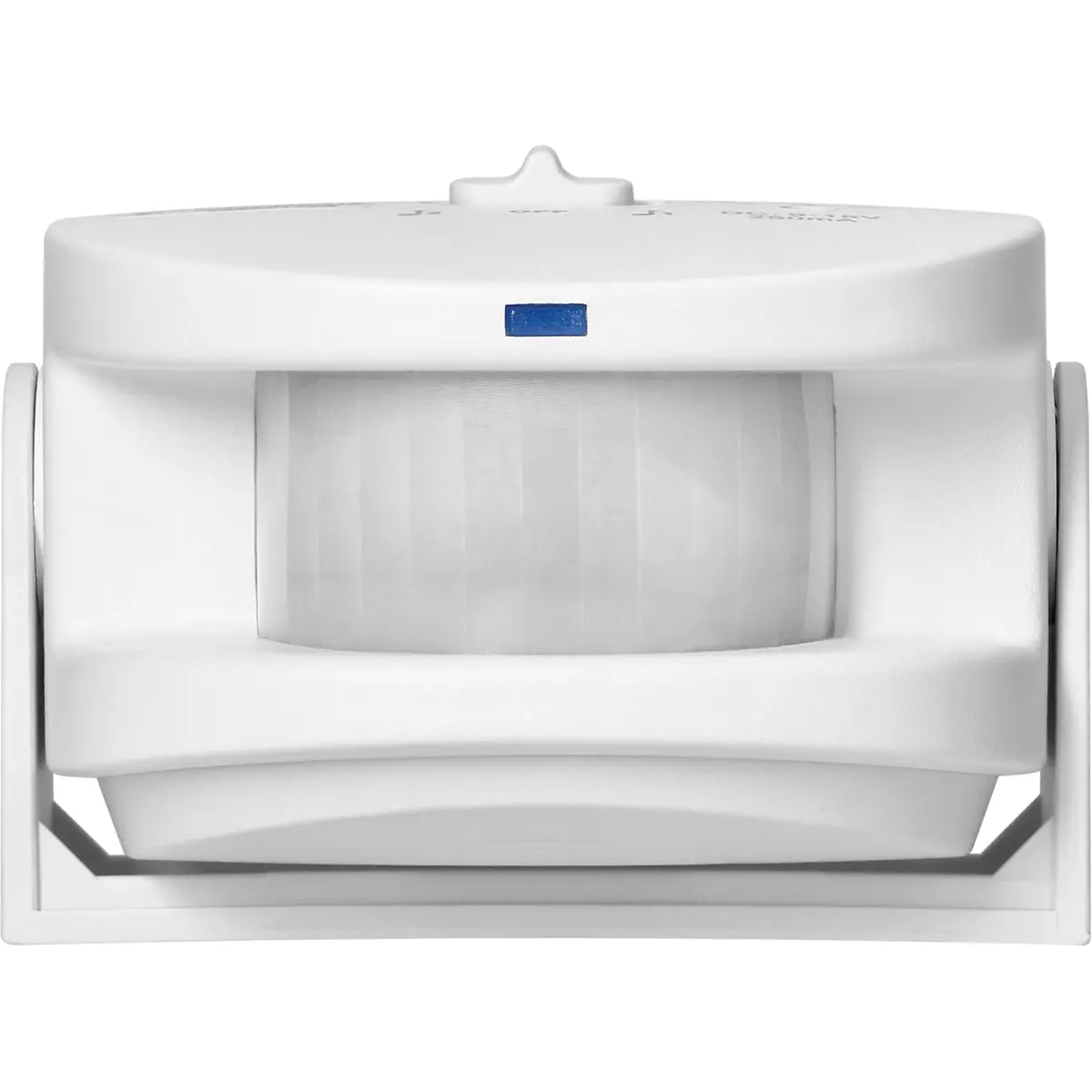 Alarme compacto com sensor de movimento PIR sem fios, que envia impulso ao recetor por rádio quando deteta movimento na área protegida. Emite sinal sonoro de 75 dB e LED indicativo, com volume regulável. Funciona com baterias 2x AAA (não incluídas) e transmite a 433,92 MHz, com ângulo de detecção de 100°, indicação óptica ativa e cor branco-azul. Instalação simples sem fios, ideal para interiores.