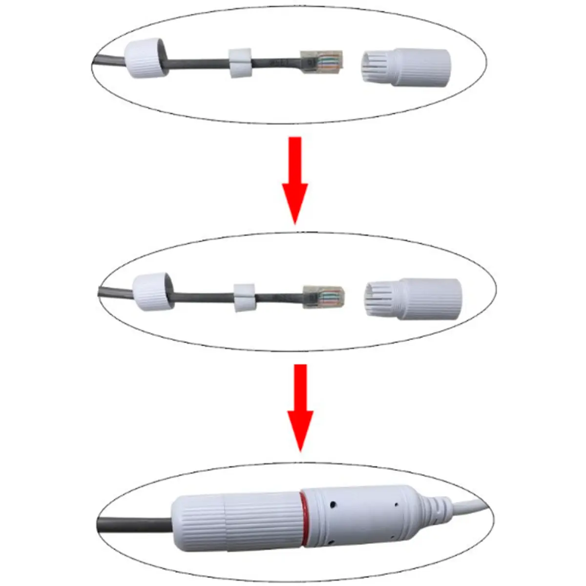 Proteção à prova de água para ficha RJ45 destinada a câmaras de vigilância. Esta tampa de conector RJ45 oferece vedação eficaz, facilitando a instalação com montagem simples. Compatível com cabos 26-14 AWG e com desencapamento de 5-6 mm, protege as ligações de rede contra água, poeira e intempéries. Ideal para exteriores ou locais expostos, assegura conectividade estável, reduzindo riscos de falhas e mantendo a integridade do sinal.