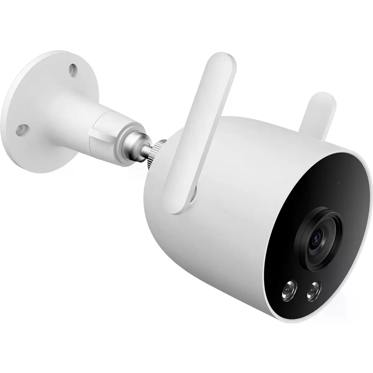 Câmara de exterior com resolução 2K (2304x1296) e compressão H.265 para vídeo fluido e eficiente em largura de banda. Possui visão noturna a cores com dois projetores LED e IA para detecção de pessoas, além de deteção de áreas-chave para monitorização focada. Inclui chamada bidirecional para áudio e vídeo, sirene inteligente personalizável, alertas instantâneos, e opções de armazenamento local (microSD até 64GB) ou nuvem gratuita por 7 dias durante 3 meses. Funciona com assistentes Alexa e Google, e é resistente a intempéries (IP66).