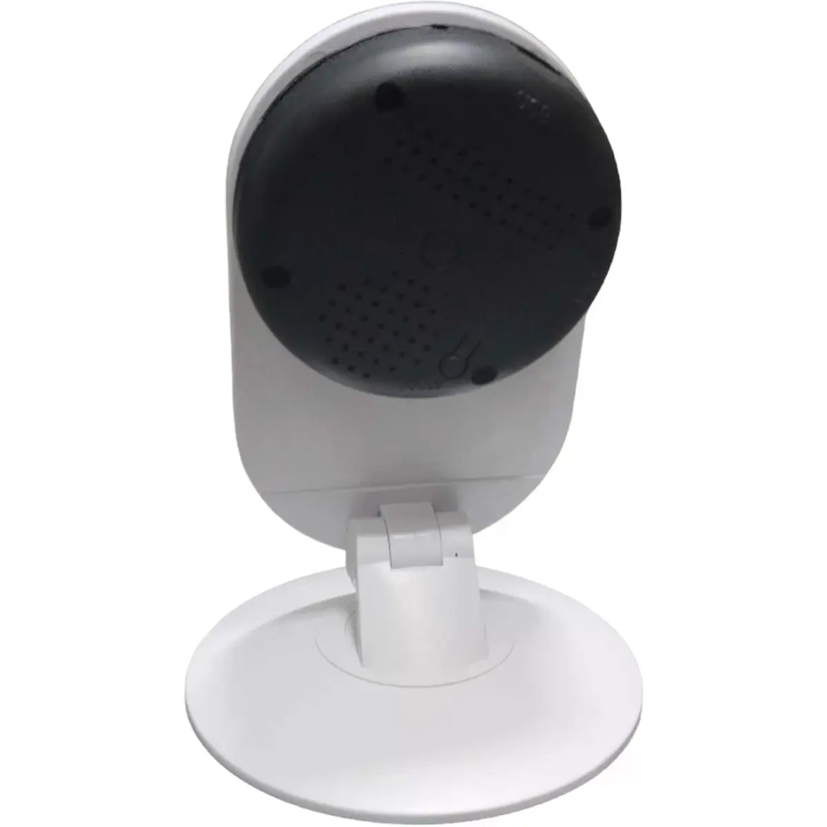 Tem um aspeto elegante e sofisticado, com um corpo branco e uma lente preta. Pode ser montada na parede ou no teto, ou colocada numa superfície plana. É fornecida com um adaptador de corrente e um cabo USB, bem como um guia de início rápido e um manual do utilizador.