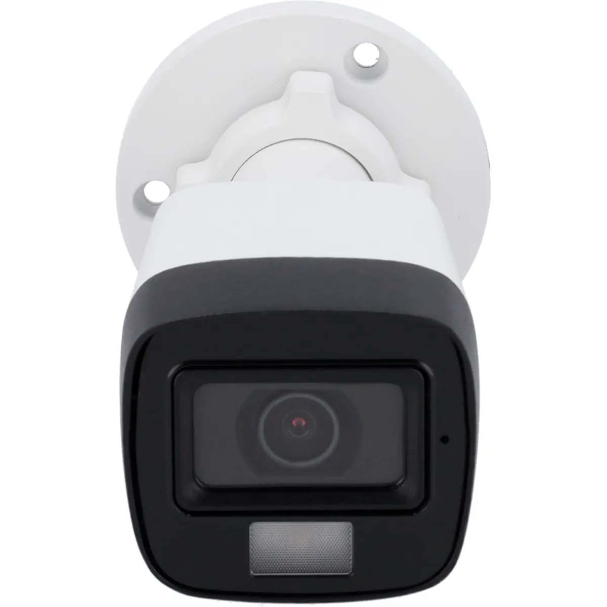Camera de vigilância analógica de alta definição 1080p, com lente fixa de 2,8 mm para um amplo campo de visão, funcionando como 4 em 1 (TVI, AHD, CVI, CVBS) com transmissão via BNC. Oferece iluminação infravermelha até 30 m para imagens noturnas nítidas, microfone integrado e áudio via cabo coaxial. Classificada IP67, resistente a água e poeira, com corpo em metal. Inclui LED branco com alcance de 20 m e função de dia/noite automática para maior segurança em exteriores.