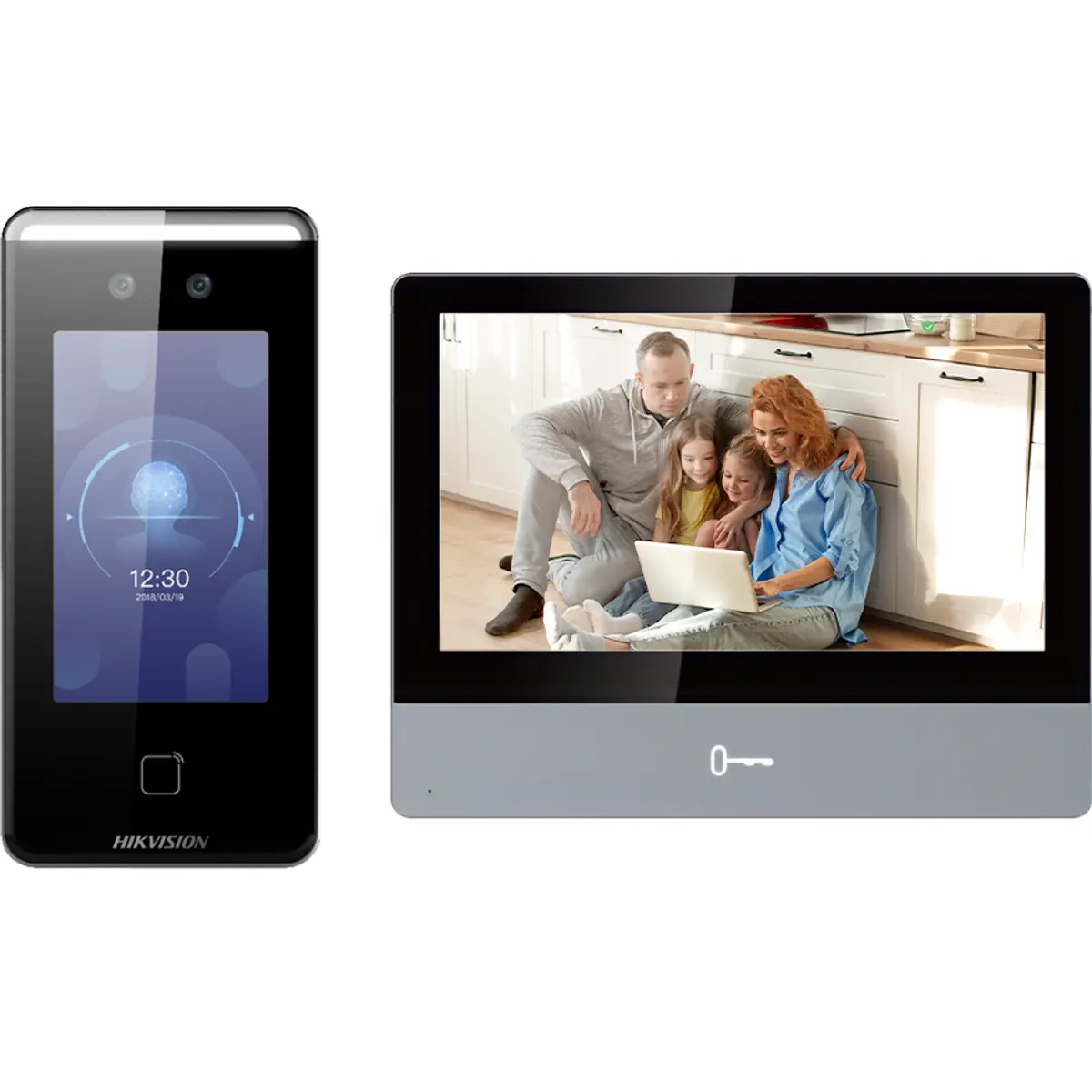 O DS-KIS901-P da Hikvision é um kit de vídeo porteiro de alta tecnologia, com conectividade IP & WiFi, projetado para proporcionar segurança e gestão de acesso eficiente em entradas de vivendas, empresas, edifícios, etc.