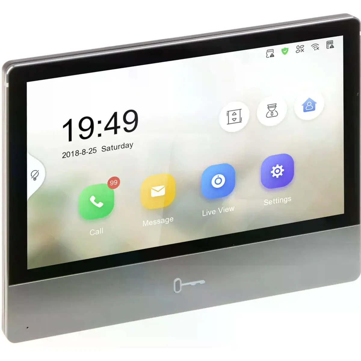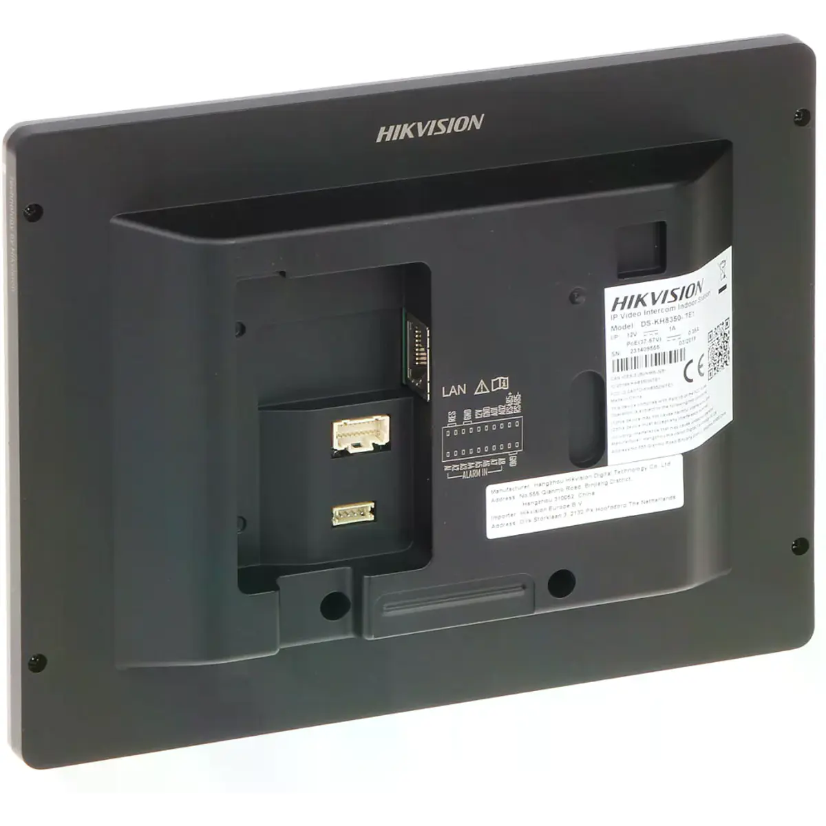 A estação interna (DS-KH8350-WTE1/EU) dispõe de um ecrã tátil IPS de 7 polegadas com resolução de 1024x600. Funcionando com o sistema operativo Linux, oferece áudio bidirecional com redução de ruído e cancelamento de eco. Esta estação inclui 8 entradas de alarme configuráveis e 2 saídas de relé, e suporta conexões Ethernet e Wi-Fi, possibilitando a integração com o software iVMS-4200 e a aplicação móvel Hik-Connect para gestão remota.