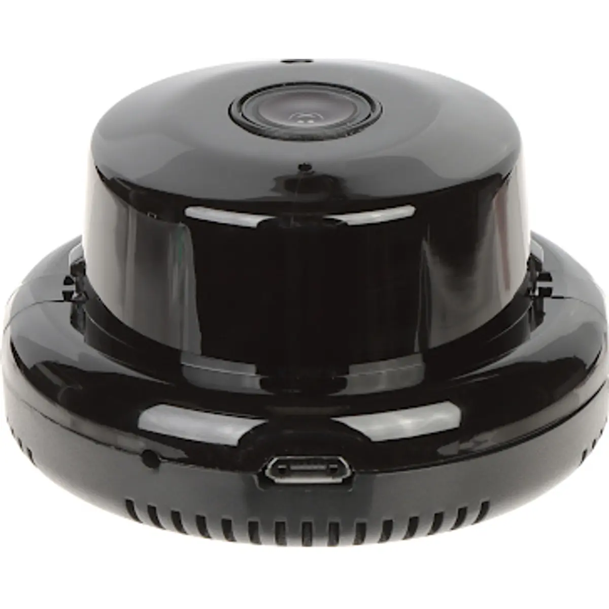 Esta câmara de vigilância IP para interior oferece conectividade WiFi, resolução 720p e lente de 3.6 mm com ângulo de visão de 90°. Inclui modo dia/noite e filtro IR para 5 m, detecção de movimento, áudio bidirecional e transmissão de áudio pela rede. A gestão ocorre via aplicação móvel (Android/iOS) com acesso por nuvem (P2P) e gravação local em microSD até 128 GB. Alimentação por USB 5V; não possui interface WEB, sendo limitada a configuração remota pela app.