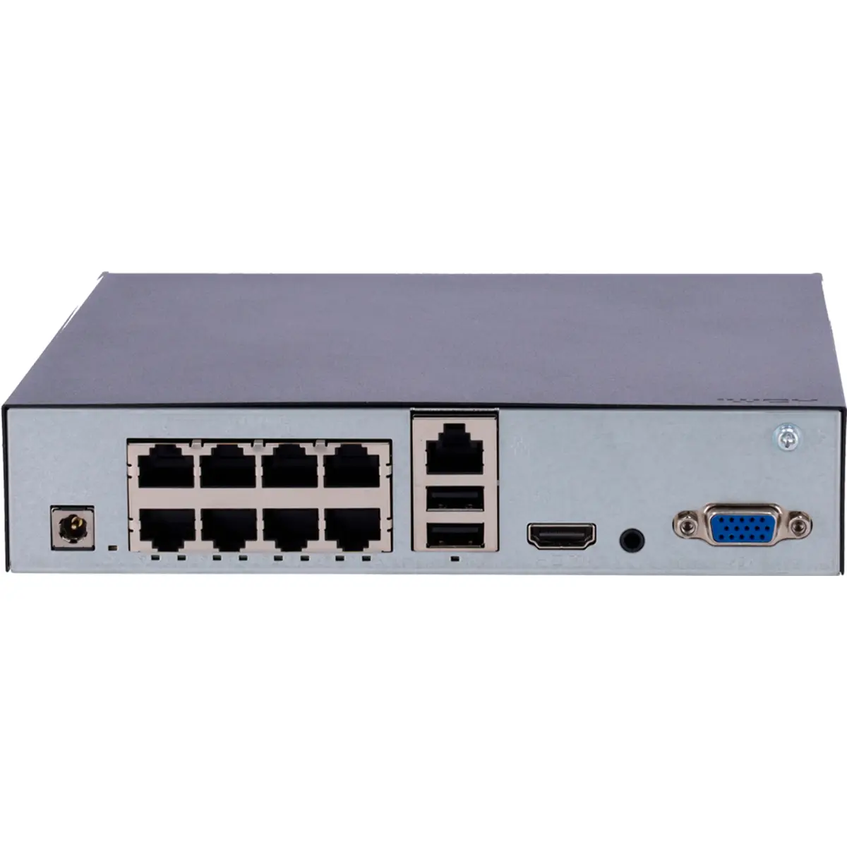 O UV-NVR-108S3-P8 é um gravador de vídeo em rede (NVR) desenvolvido para sistemas de videovigilância IP de pequena e média dimensão. Suporta até 8 câmaras IP e integra 8 portas PoE, permitindo alimentar e ligar diretamente as câmaras através de um único cabo de rede. Este NVR suporta compressão de vídeo Ultra265, H.265 e H.264, tecnologias que reduzem significativamente o consumo de largura de banda e o espaço de armazenamento necessário, mantendo a elevada qualidade de imagem. O sistema permite gravação até 6 MP por câmara e disponibiliza saídas de vídeo HDMI 4K e VGA, possibilitando a visualização local em monitores de alta resolução.
