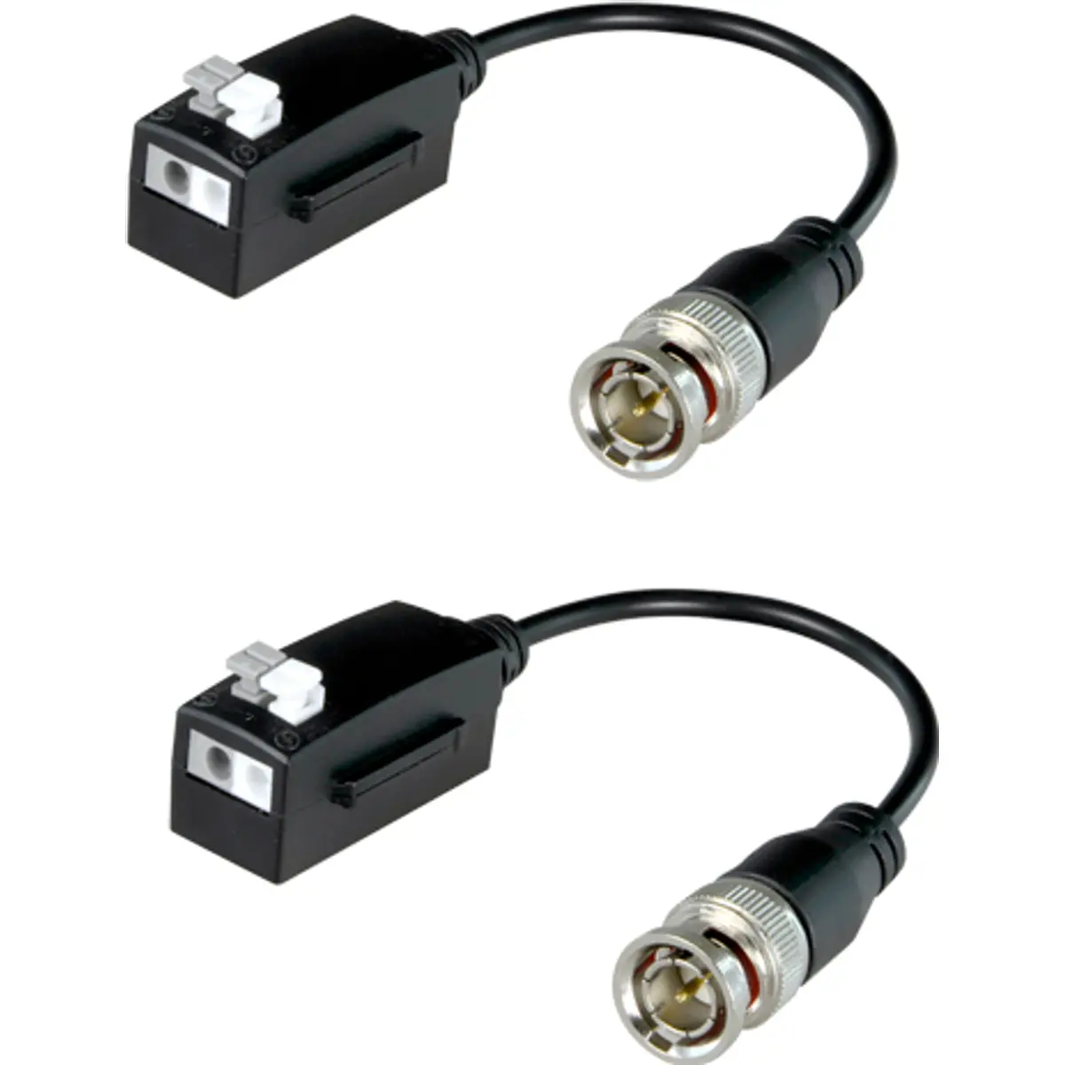 Optimizado para transmissão do sinal de vídeo de 1 câmara de alta definição analógica HDTVI/HDCVI/AHD/CVBS. Dispõe de conector BNC macho e terminal de inserção de cabo por pressão, conector de dois pinos.
