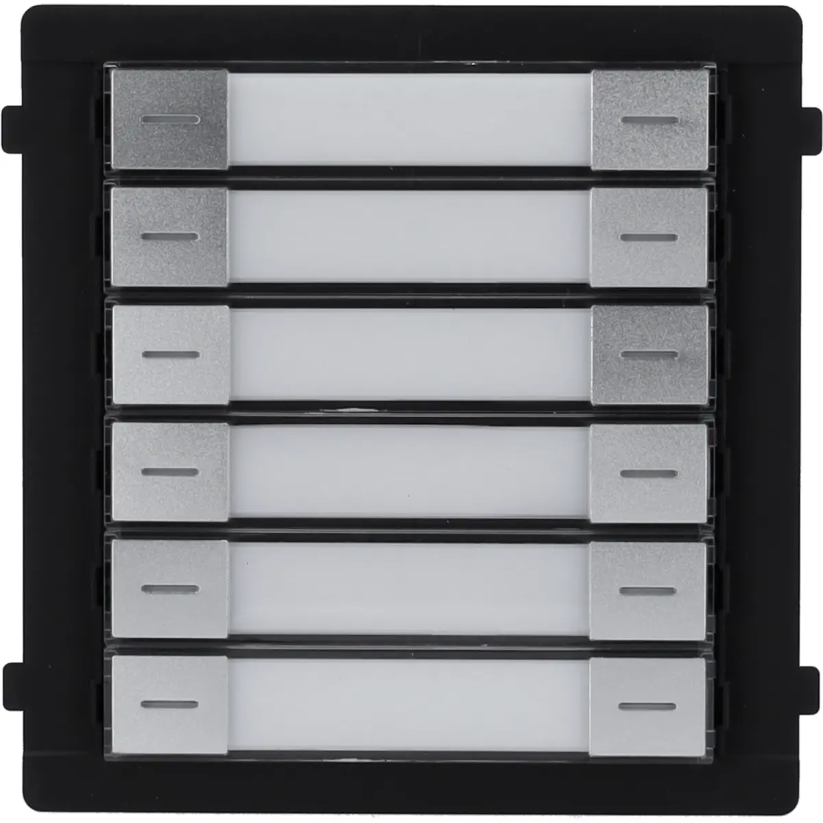 Este módulo de botoneira de 12 botões funciona como extensão para videoporteiro modular de dois fios. Possui 12 botões, 6 etiquetas LED para identificação e proteção IP65 para uso externo. Compatível com sistemas de videoporteiro modulares. Inclui 4 tampas cegas e 6 tampas de um botão, ideal para personalizar acessos e gerir entradas em exteriores, com resistência às intempéries.