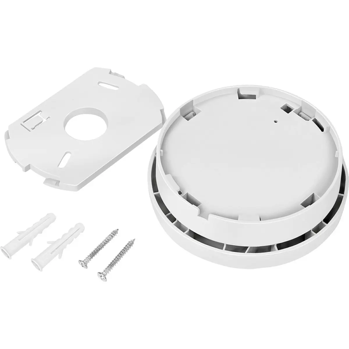 Detetor de fumo fotoelétrico de uso doméstico, com alarme de 85 dB, indicador luminoso intermitente e modo silencioso de 10 minutos para reduzir alarmes falsos. Possui pilha de lítio integrada de 3V com duração até 10 anos e sinal de fim de vida, não recarregável nem substituível. Cumpre EN 14604 e possui aprovação VdS G 221022, oferecendo proteção 24 horas em casa ou em caravanas. Teste semanal, limpeza mensal e substituição após 10 anos para manter a segurança.