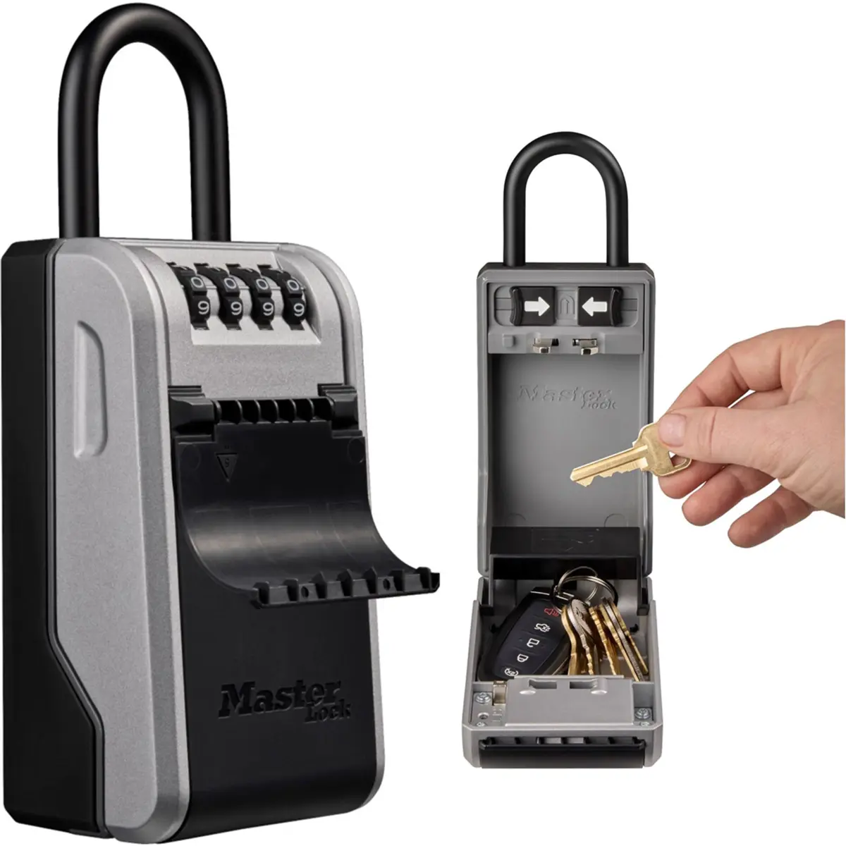 Caixa de segurança para chaves, de pendurar, com manilha de cadeado removível, para fácil instalação em diversos locais. Dispõe de compartimento interno que mantém as chaves no lugar, evitando bloqueios ao abrir e fechar. Com capacidade dupla de armazenamento, acomoda chaves, cartões e comandos de diferentes tamanhos.