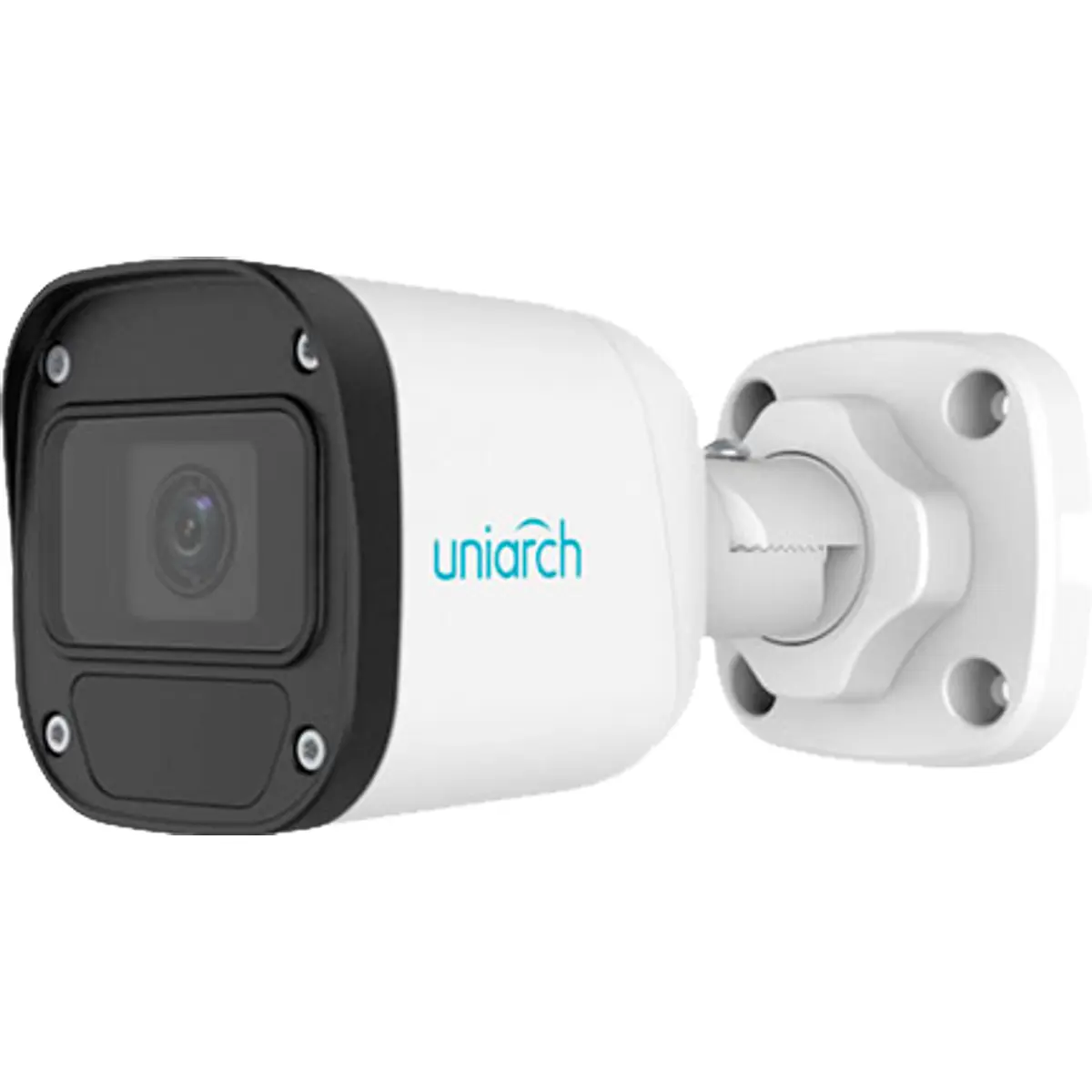 Câmara de videovigilância IP de alta definição da gama Uniarch, com sensor de 5MP, compressão Ultra265 e microfone integrado. Equipada com lente grande angular de 2.8 mm, visão noturna até 30 metros e proteção IP67, é ideal para aplicações exteriores exigentes.