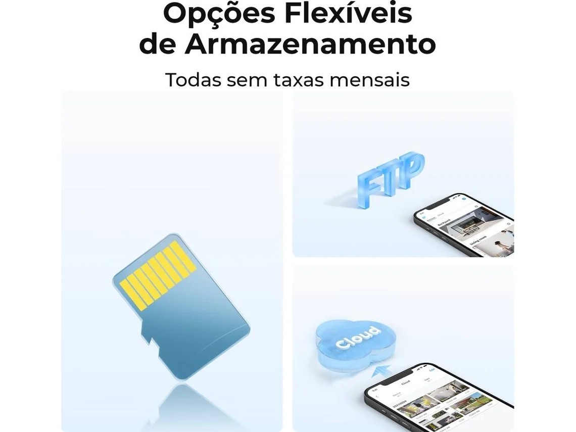 Guarde os seus vídeos num cartão microSD (até 128 GB) ou opte pela cloud Reolink (onde disponível) para maior segurança.