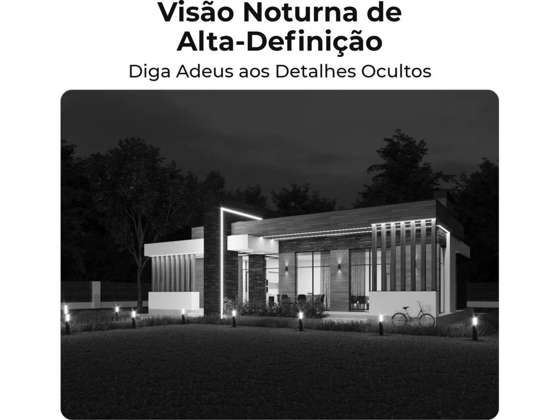 Equipada com 6 LEDs infravermelhos (850nm), permite captar imagens nítidas mesmo em ambientes com pouca luz, com alcance até 10 metros.