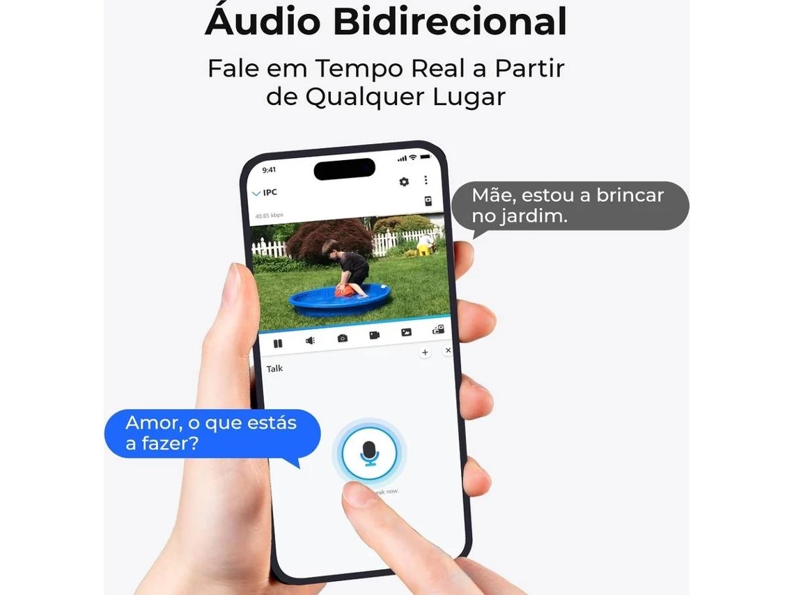 Fale em tempo real com quem está do outro lado da câmara — ideal tanto para acolher visitas como para dissuadir intrusos.
