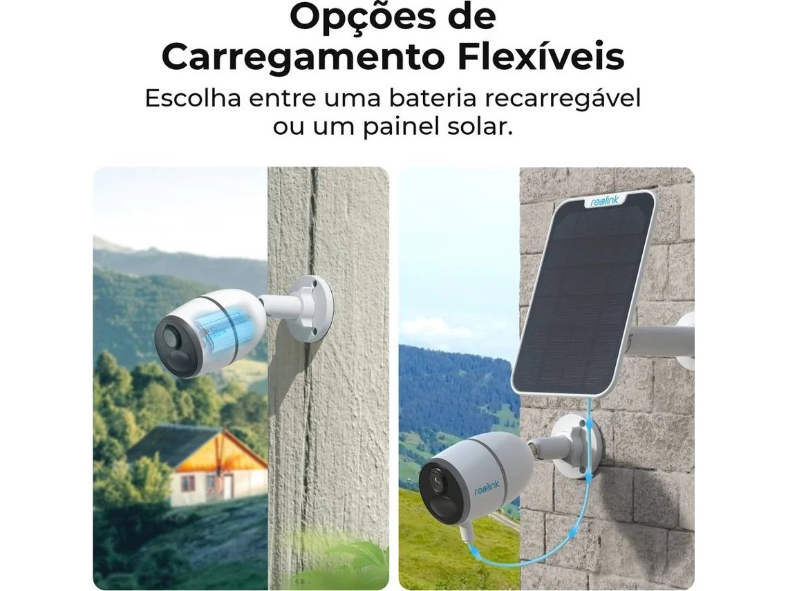 Utilize a bateria integrada de 7800mAh para várias semanas de funcionamento e mantenha a carga de forma contínua com o painel solar Reolink já incluído na embalagem.