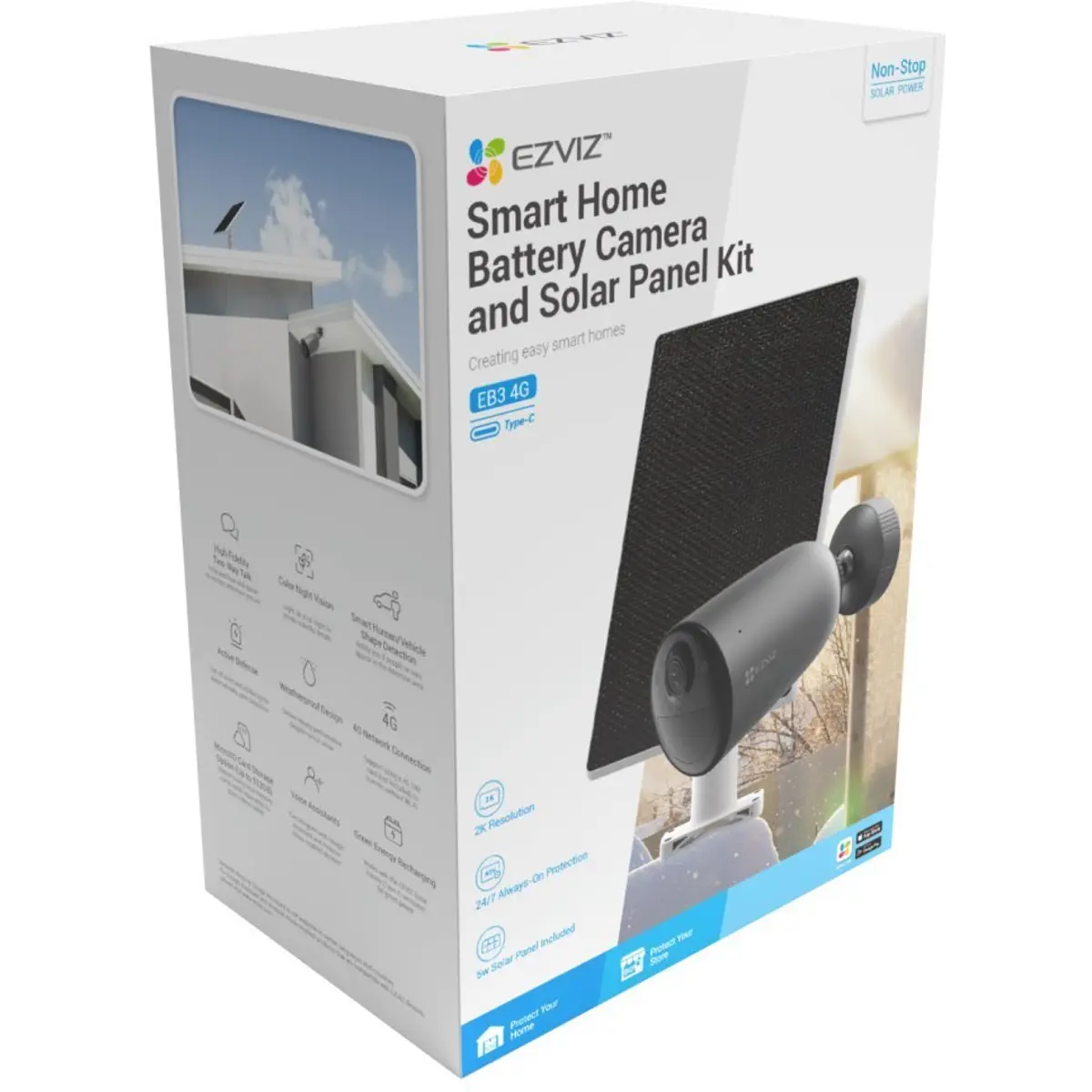A EZVIZ EB3 4G com painel solar é uma câmara de segurança inteligente para exteriores com resolução 2K e ligação 4G LTE, ideal para locais remotos sem Wi-Fi nem alimentação elétrica.