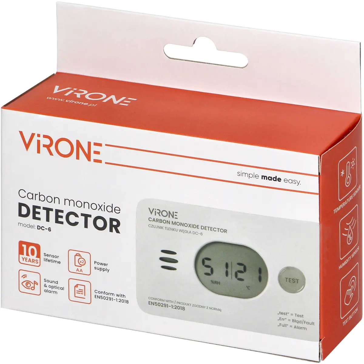 - Ecrã LCD com indicação de CO, temperatura e humidade