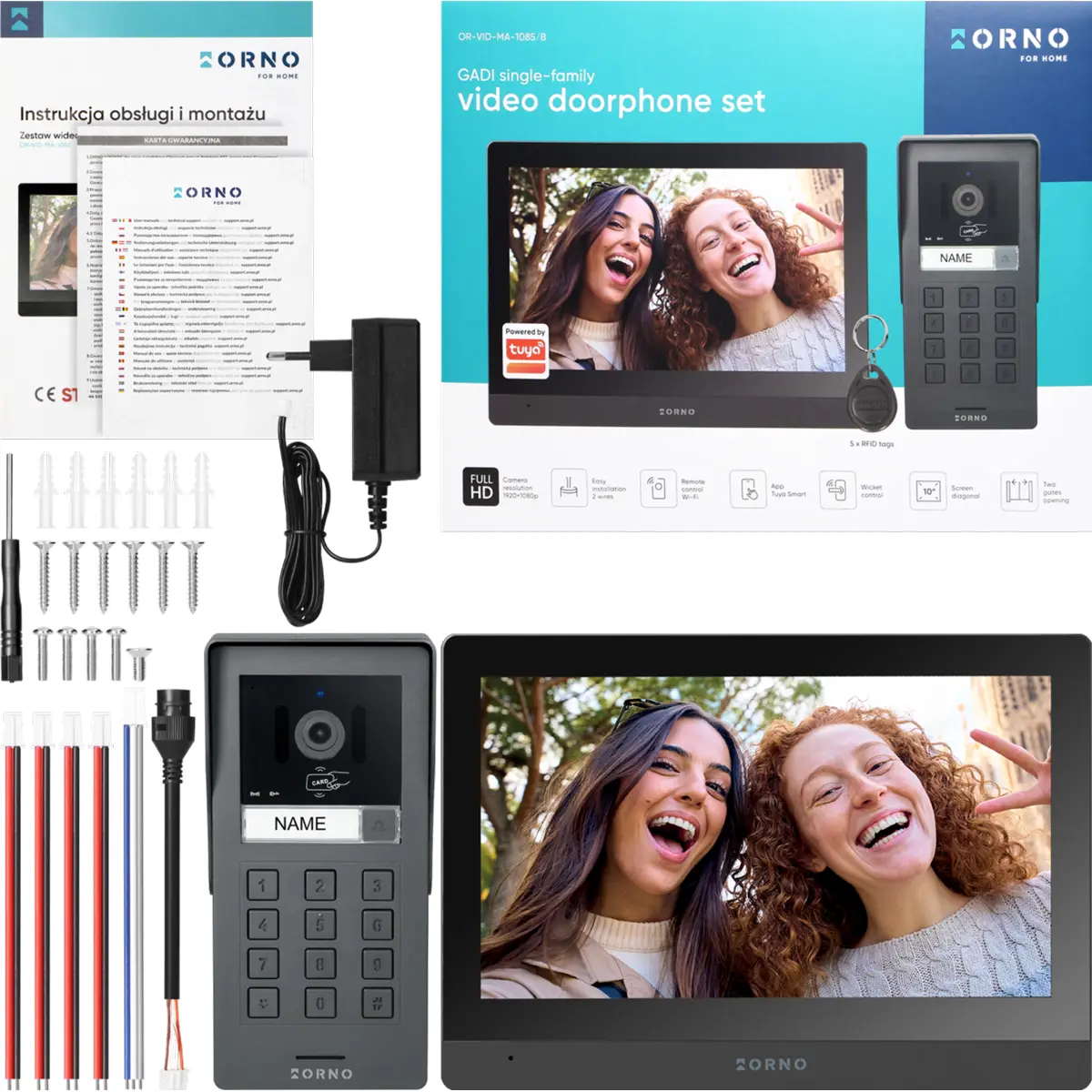 O conjunto de vídeo porteiro GADI proporciona controlo completo e monitorização da entrada da propriedade, garantindo segurança e conveniência com tecnologia inteligente. O monitor possui ecrã tátil de 10" em cor, com navegação intuitiva. A instalação é simples graças à ligação de 2 fios, independentemente da polaridade.