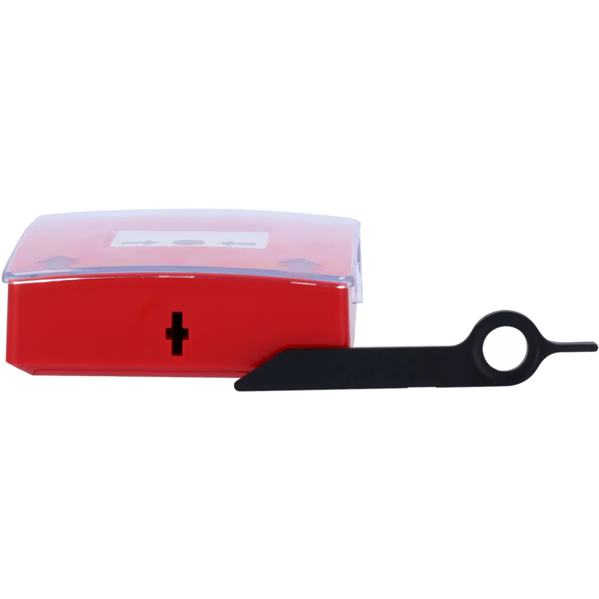 ✅ A tampa protetora transparente reduz alarmes acidentais e o elemento frangível rearmável permite múltiplos usos após reset