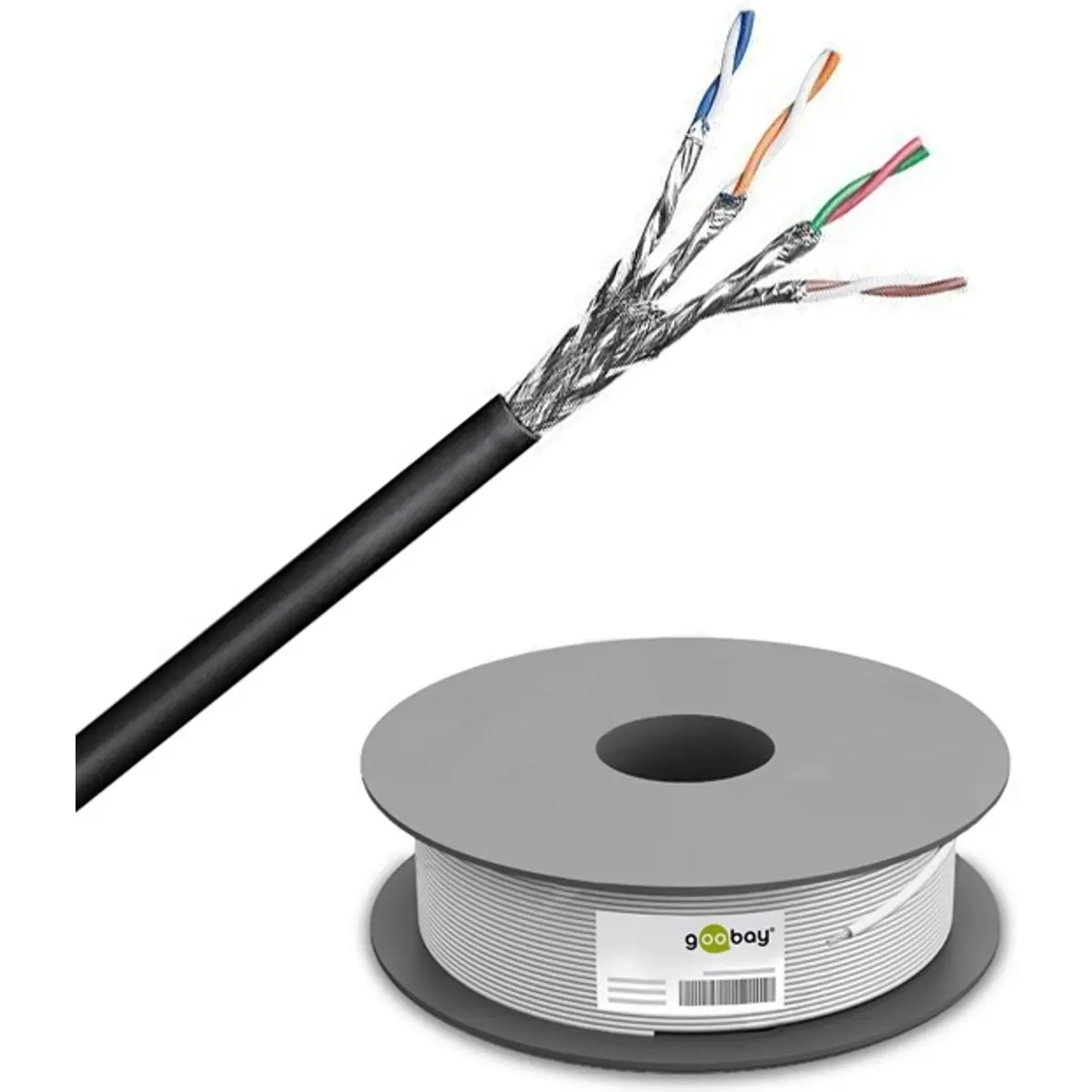 Goobay - Cabo CAT6 S/FTP multifilar CCA AWG26/7 - para exterior - rolo 100m preto