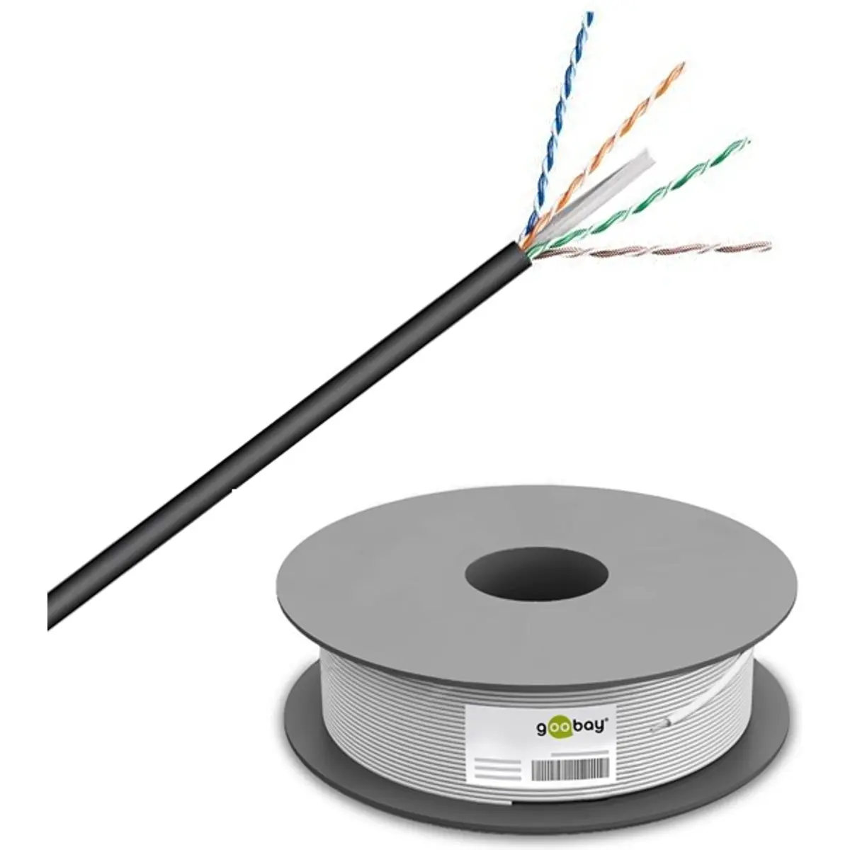 Goobay - Cabo CAT6 U/UTP unifilar CCA AWG23/1 - para exterior - rolo 100m preto