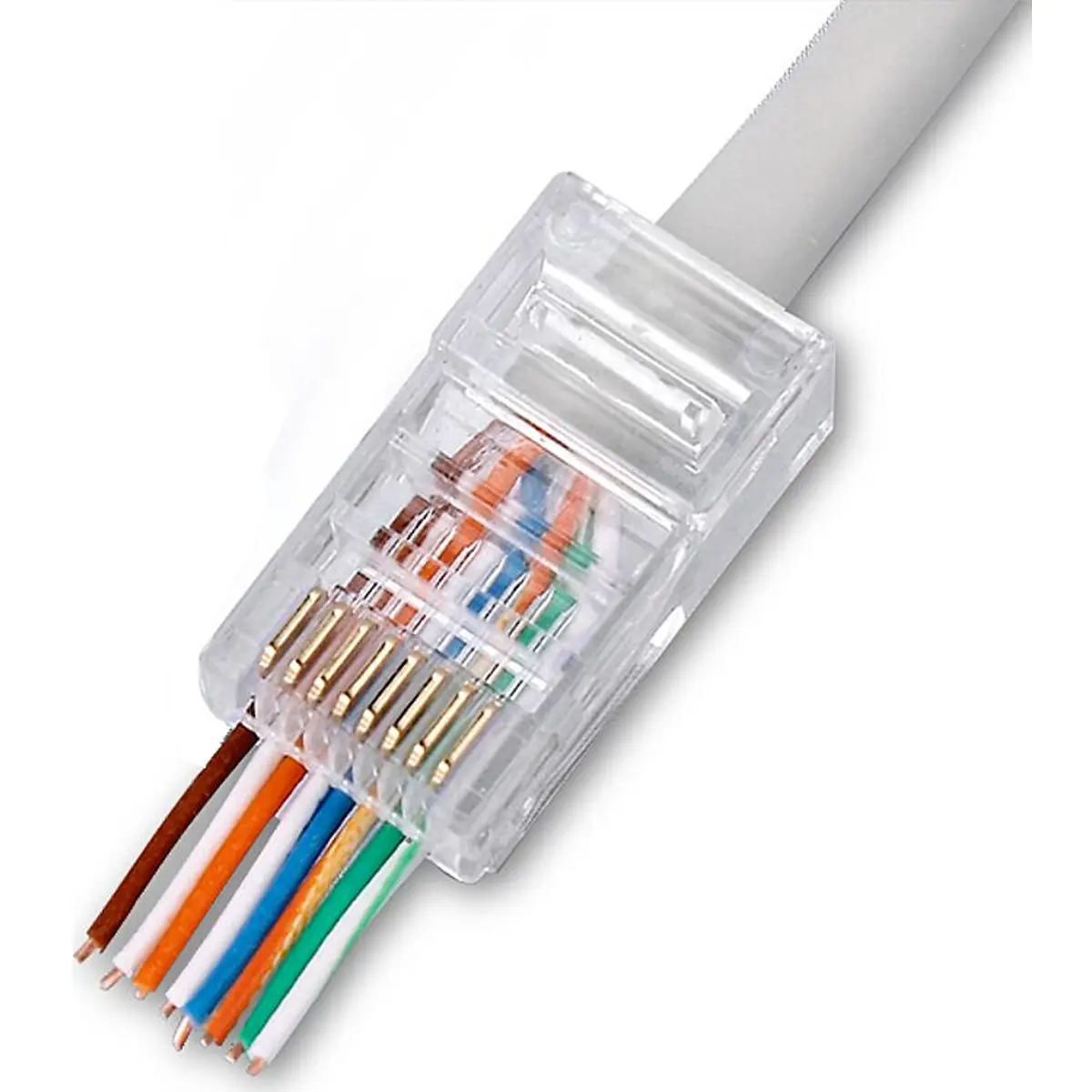 Ficha RJ45 de passagem com tecnologia passante para cabos Cat6a UTP. Conector macho RJ45 rápido, compatível com cabos Cat6a UTP (8P8C). Ideal para ligações de rede que exigem conectores confiáveis com Cat6a UTP.