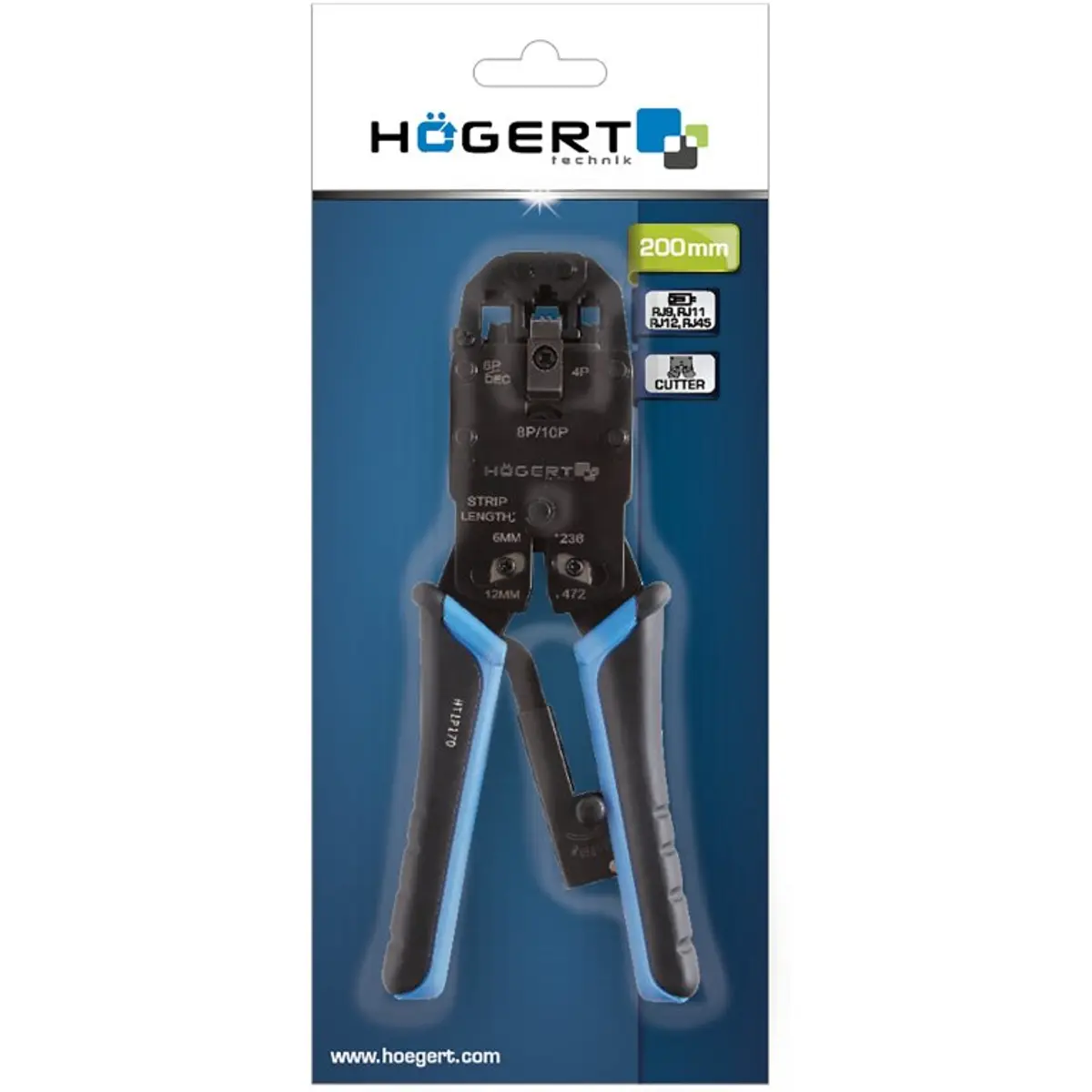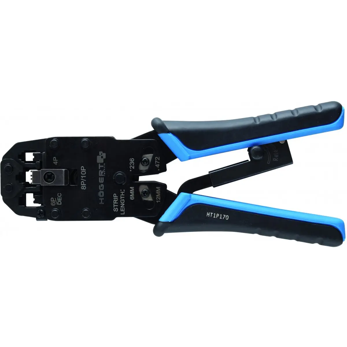 Alicate de cravar fichas RJ, indicada para trabalhos de instalação e montagem em redes de comunicação.