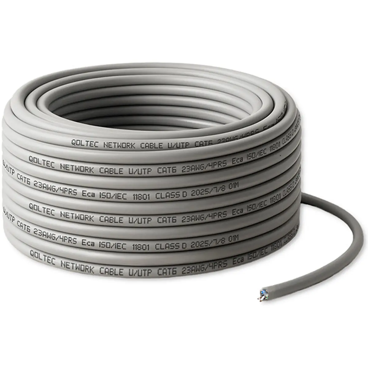 Qoltec - Cabo CAT6 U/UTP unifilar Cu AWG23/1 - Cinza - 50m