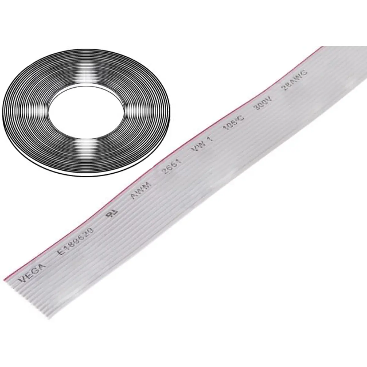 Fita flat-cable de 14 vias com passo de 1,27 mm, concebida para ligações internas entre componentes e placas de circuito impresso. Possui condutores Ø28 AWG e resistência nominal de 300V, fornecida em rolo de 30,5 m para facilitar cortes, crimpagem e organização de cablagem. Ideal para ligações entre conectores de fita e componentes em projetos que exigem densidade de vias, flexibilidade e montagem compacta em painéis, gabinetes e dispositivos.