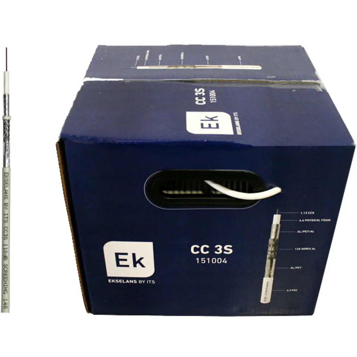 Ekselans CC3S - Bobine 250m - Cabo coaxial RG6 75Ω Ø6.9mm - Branco