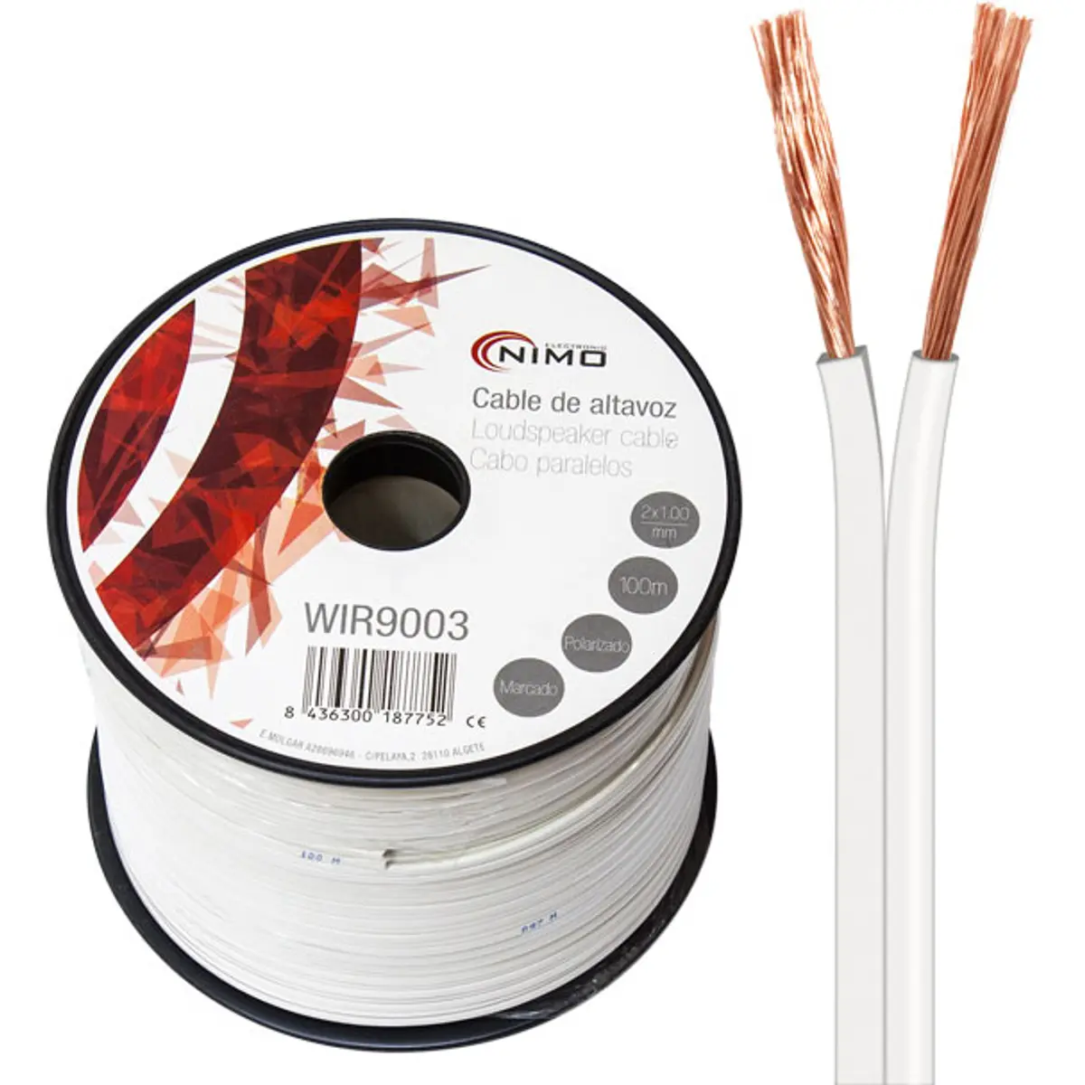 Nimo - Fio de coluna branco 2x1.0mm² CCA 100m