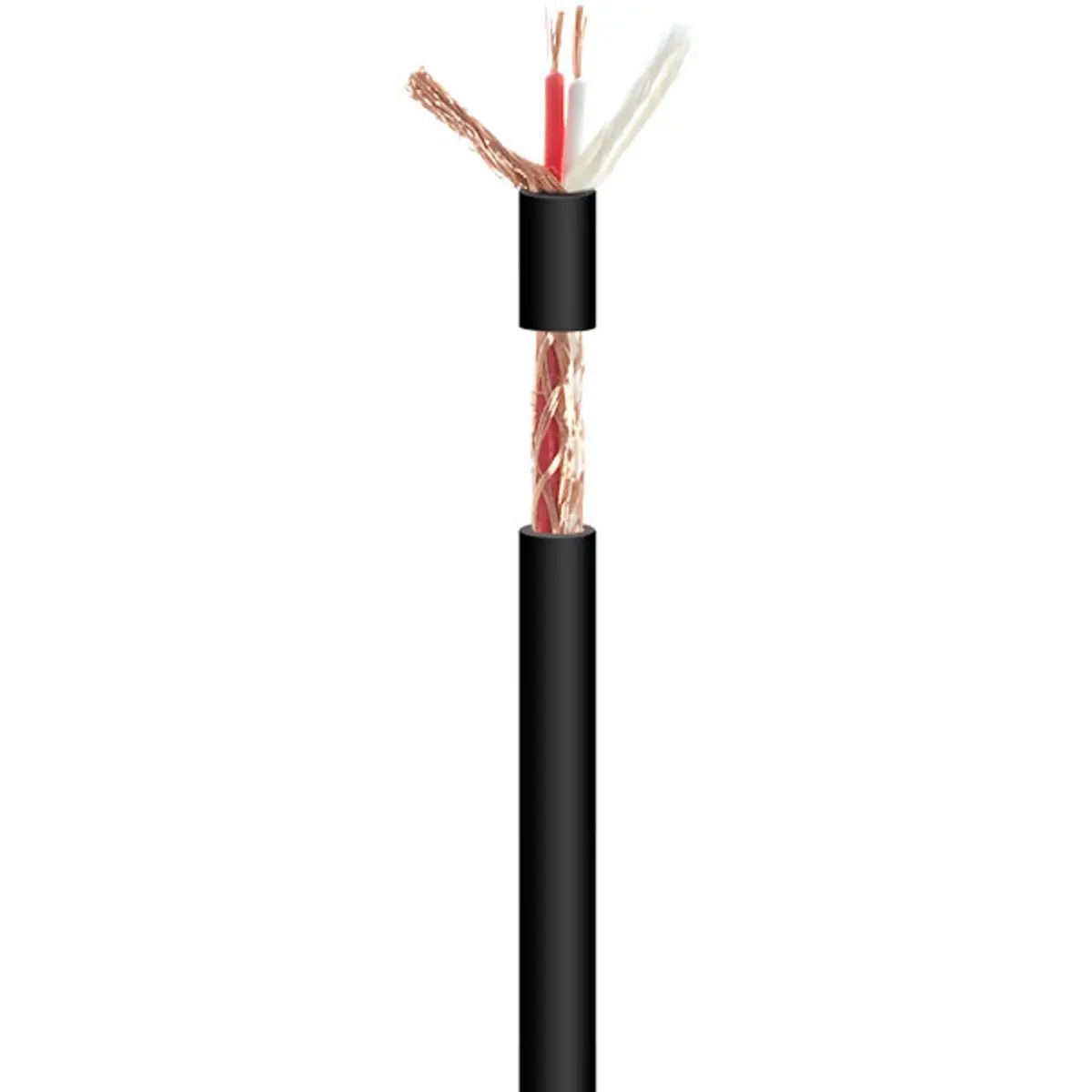 Este cabo de microfone com dois condutores e malha de proteção é adequado para equipamento de áudio profissional. Fabricado com CCA + PVC, tem diâmetro exterior de 6 mm, condutores de 0,25 mm² e malha de 64 fios de 0,12 mm, proporcionando boa blindagem e flexibilidade. Disponível em 100 m, é indicado para ligações de áudio em estúdios, palco ou aplicações domésticas, com resistência a interferências e durabilidade.