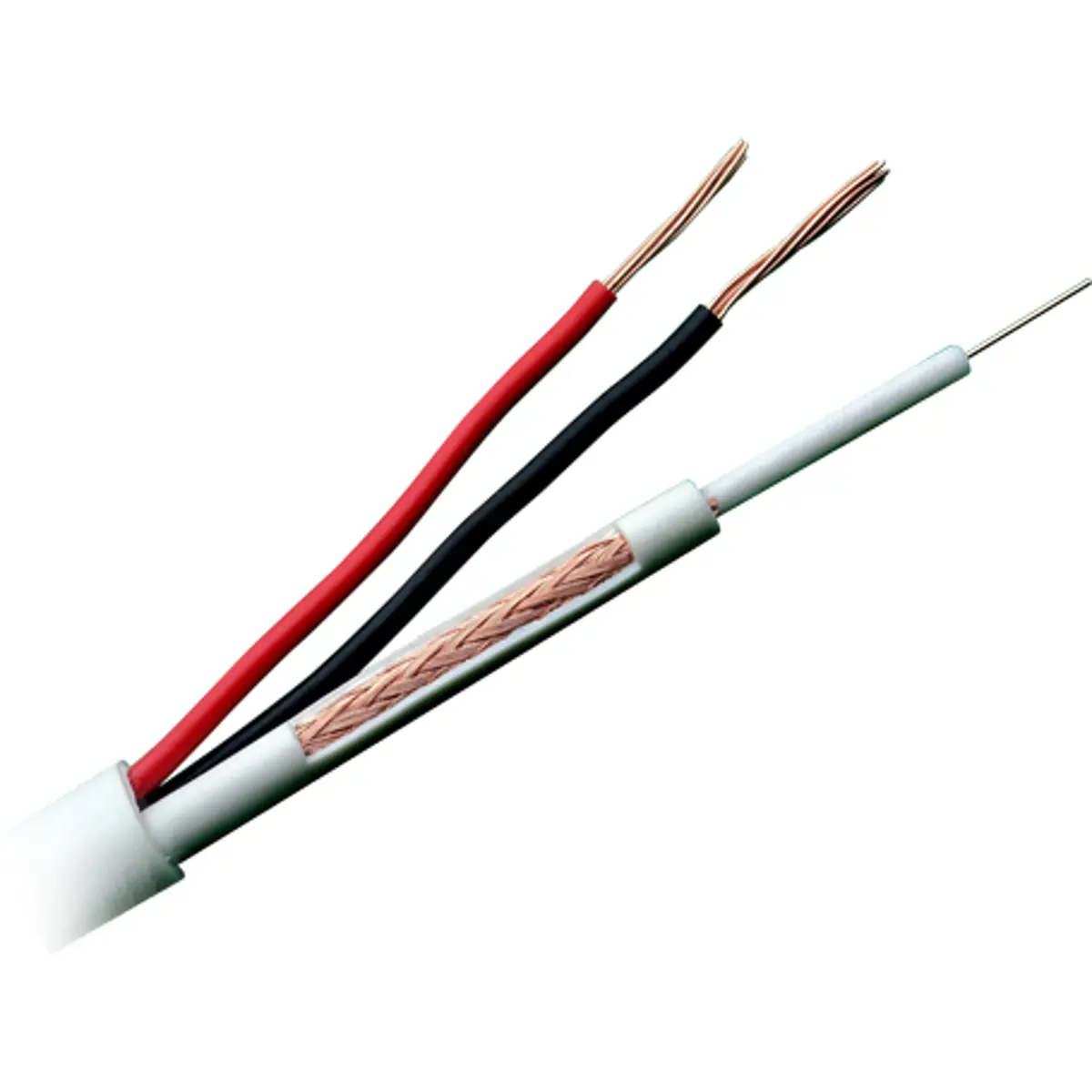 Este cabo combinado para CCTV oferece um cabo coaxial com condutor central de cobre de 0.404 mm, isolamento PE espuma de 2.0 mm, malha trançada CCA 80/0.12 mm e cobertura PVC de 3.5 mm, juntamente com um cabo de alimentação DC com condutor interior CCA 7/0.38 mm, isolamento PVC 1.8 mm e cobertura exterior PVC. Vem em bobine de 100 metros, na cor branca, ideal para instalações de vigilância por CCTV, com encaixe simples e compatível com várias câmaras.