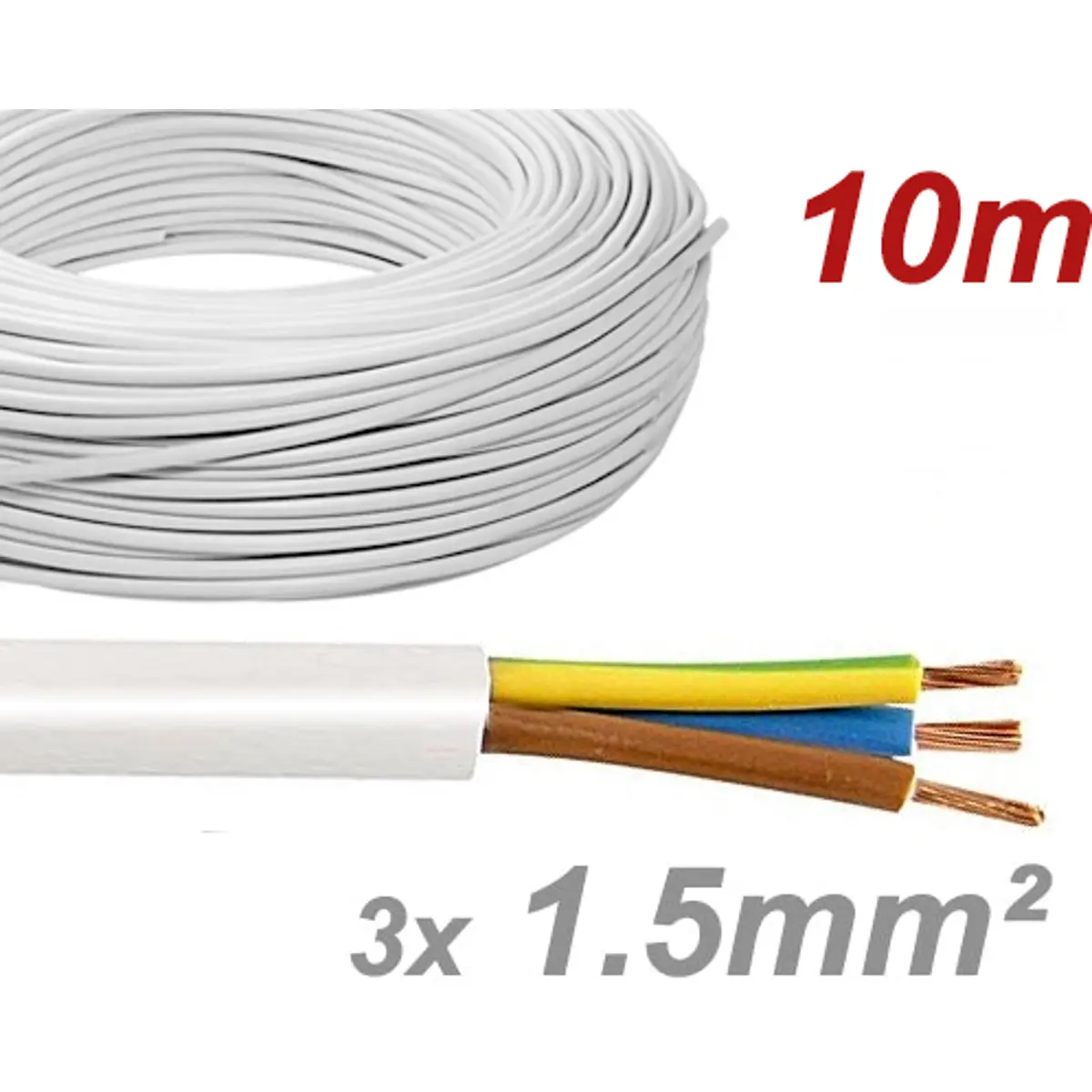 Cabo elétrico multifilar redondo FVV 3x1.5mm² branco - H05VV-F 3G1.5 (rolo de 10m)