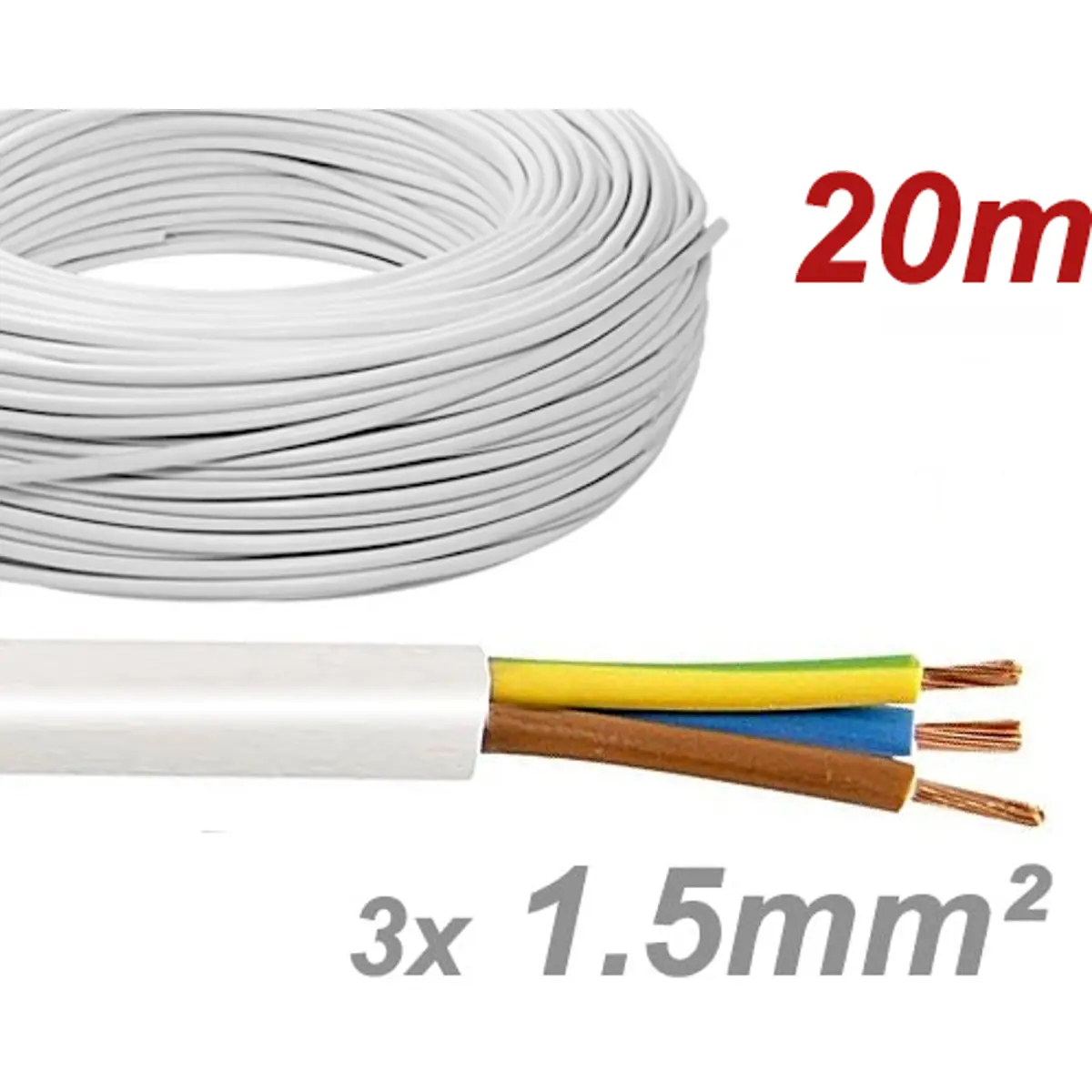 Cabo elétrico multifilar redondo FVV 3x1.5mm² branco - H05VV-F 3G1.5 (rolo de 20m)