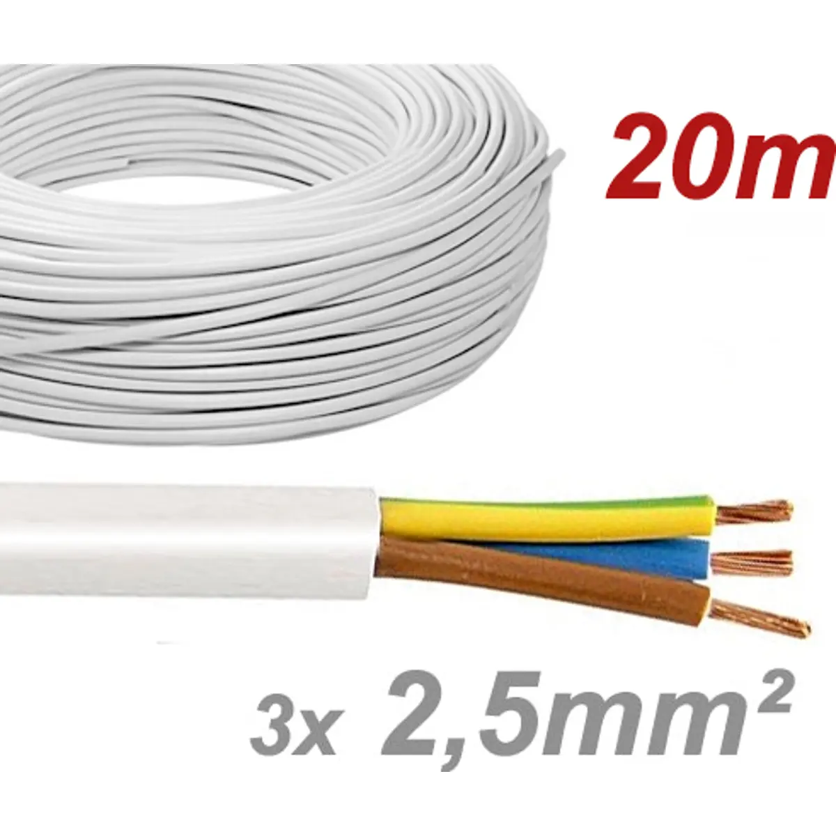 Cabo elétrico multifilar redondo FVV 3x2.5mm² branco - H05VV-F 3G2.5 (rolo de 20m)