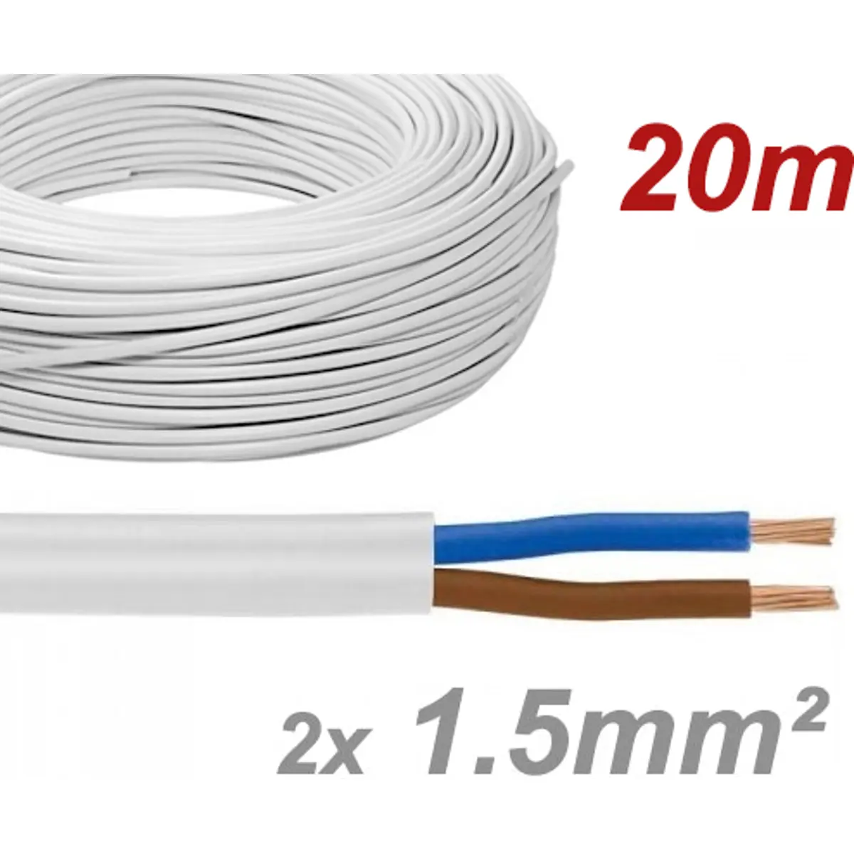 Cabo elétrico multifilar redondo FVV 2x1.5mm² branco - H05VV-F 2X1.5 (rolo de 20m)