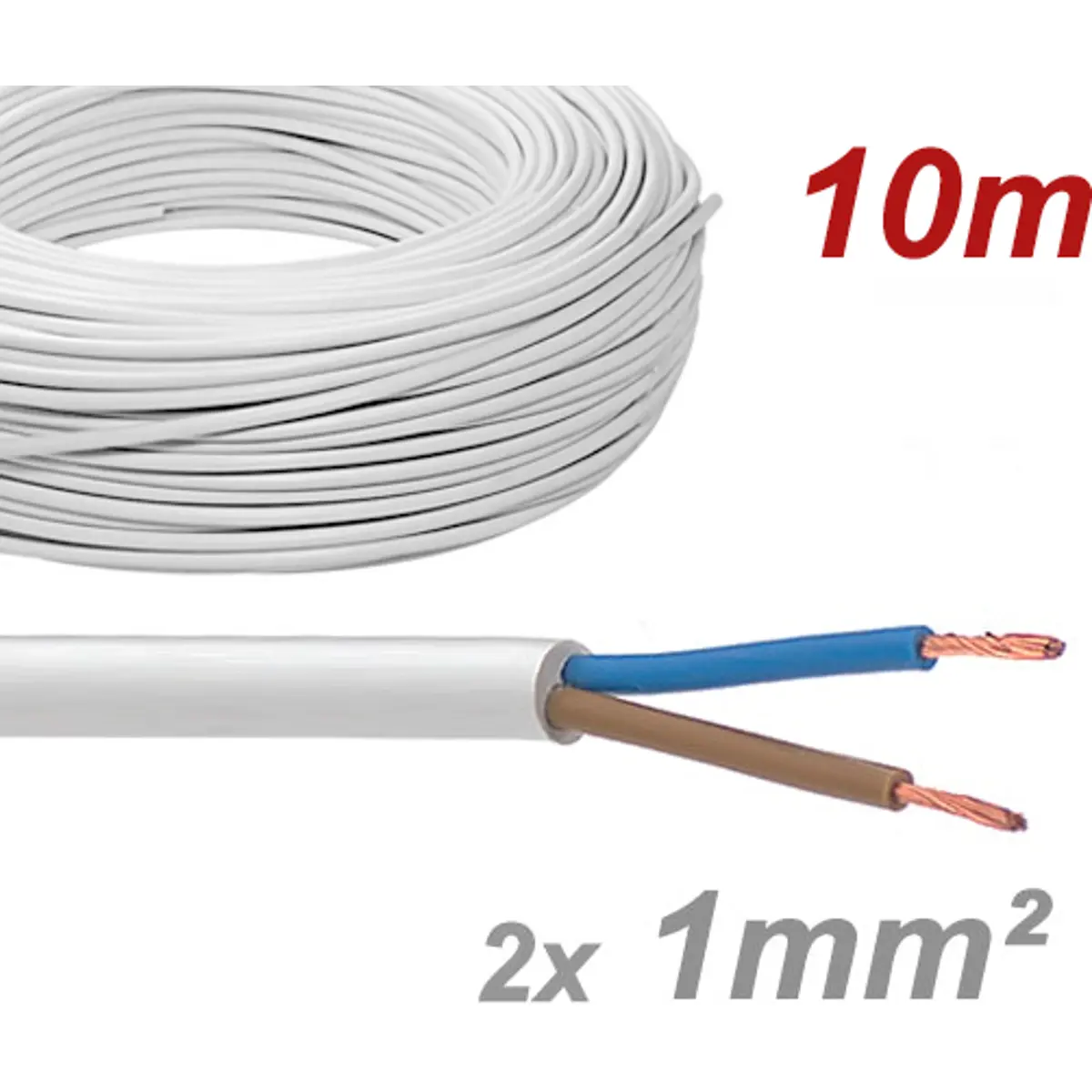 Cabo elétrico multifilar redondo FVV 2x1.0mm² branco - H05VV-F (rolo de 10m)