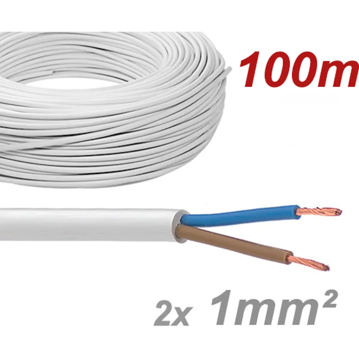 Cabo elétrico multifilar redondo FVV 2x1.0mm² branco - H05VV-F (rolo de 100m)