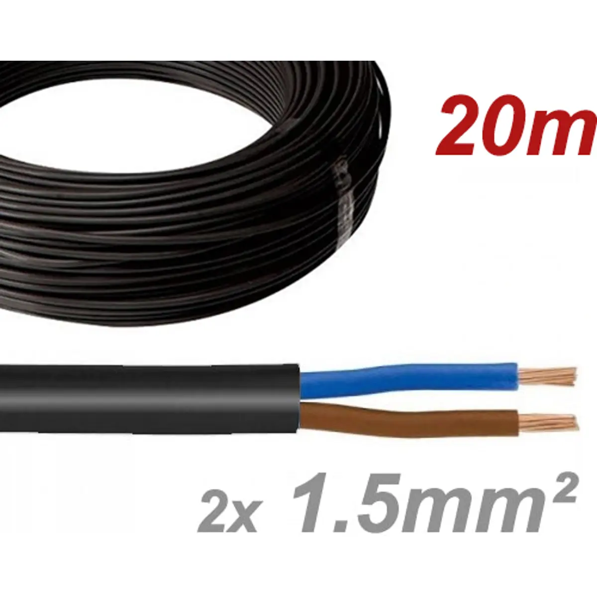 Cabo elétrico multifilar redondo FVV 2x1.5mm² preto - H05VV-F 2X1.5 (rolo de 20m)