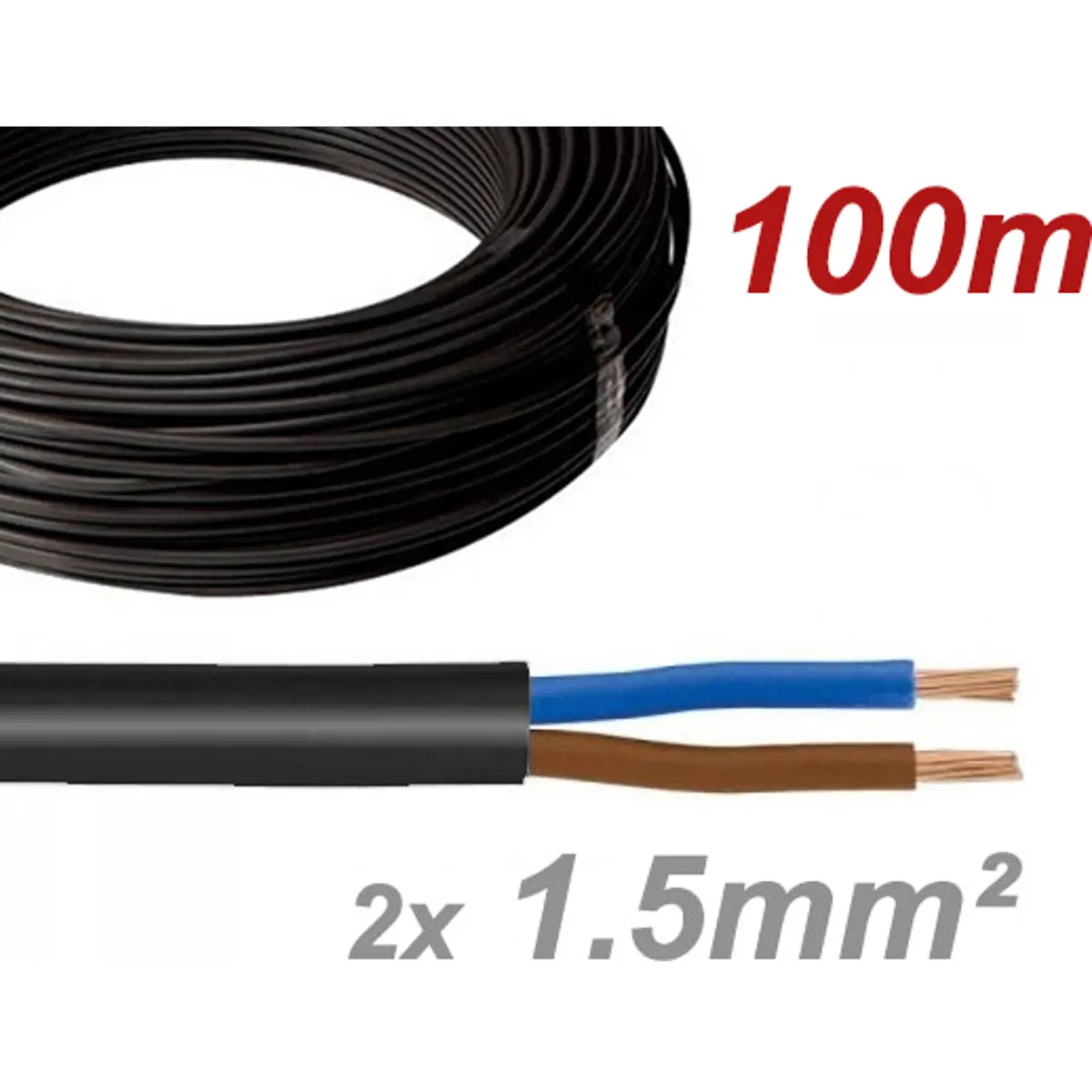 Cabo elétrico multifilar redondo FVV 2x1.5mm² preto - H05VV-F 2X1.5 (rolo de 100m)