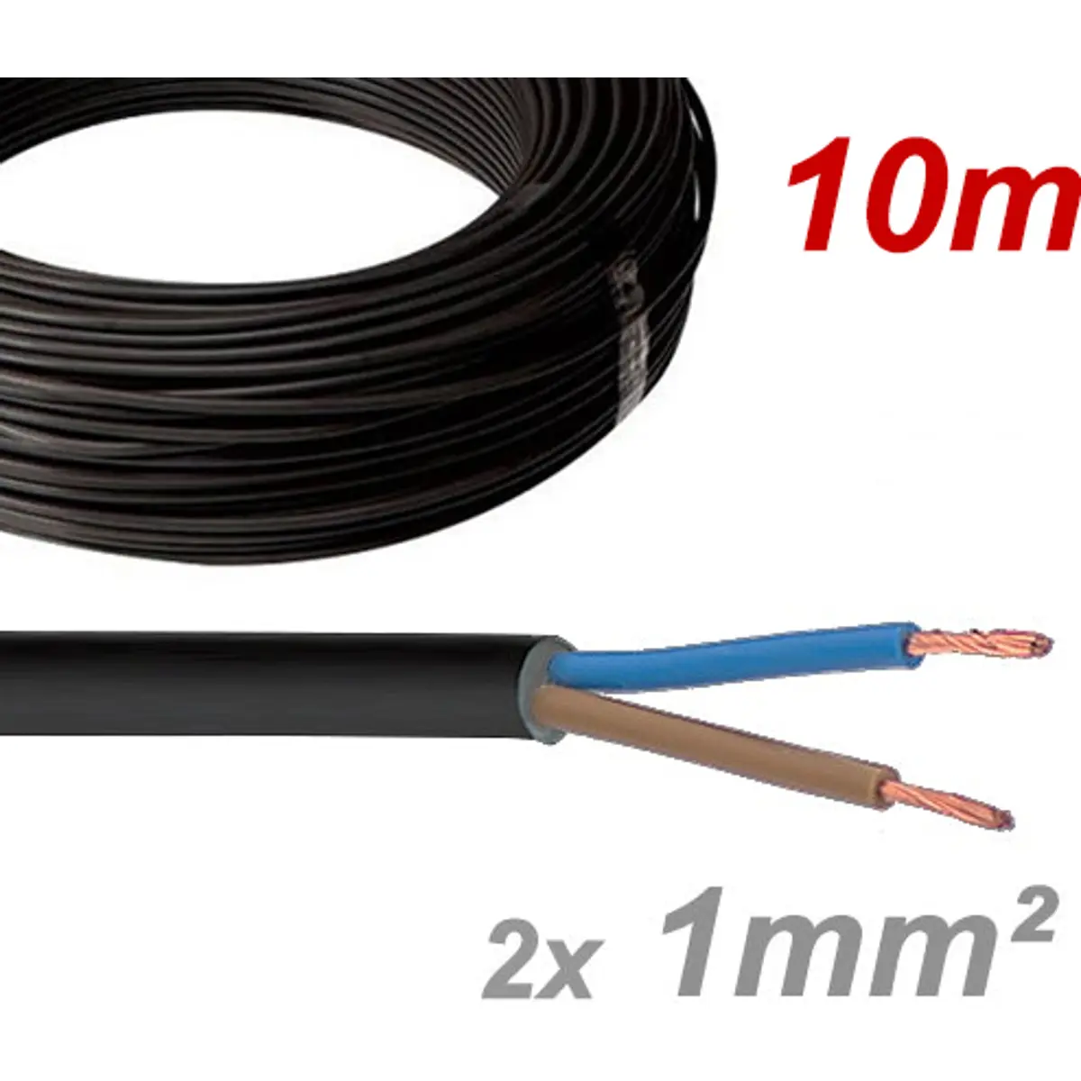 Cabo elétrico multifilar redondo FVV 2x1.0mm² preto - H05VV-F (rolo de 10m)