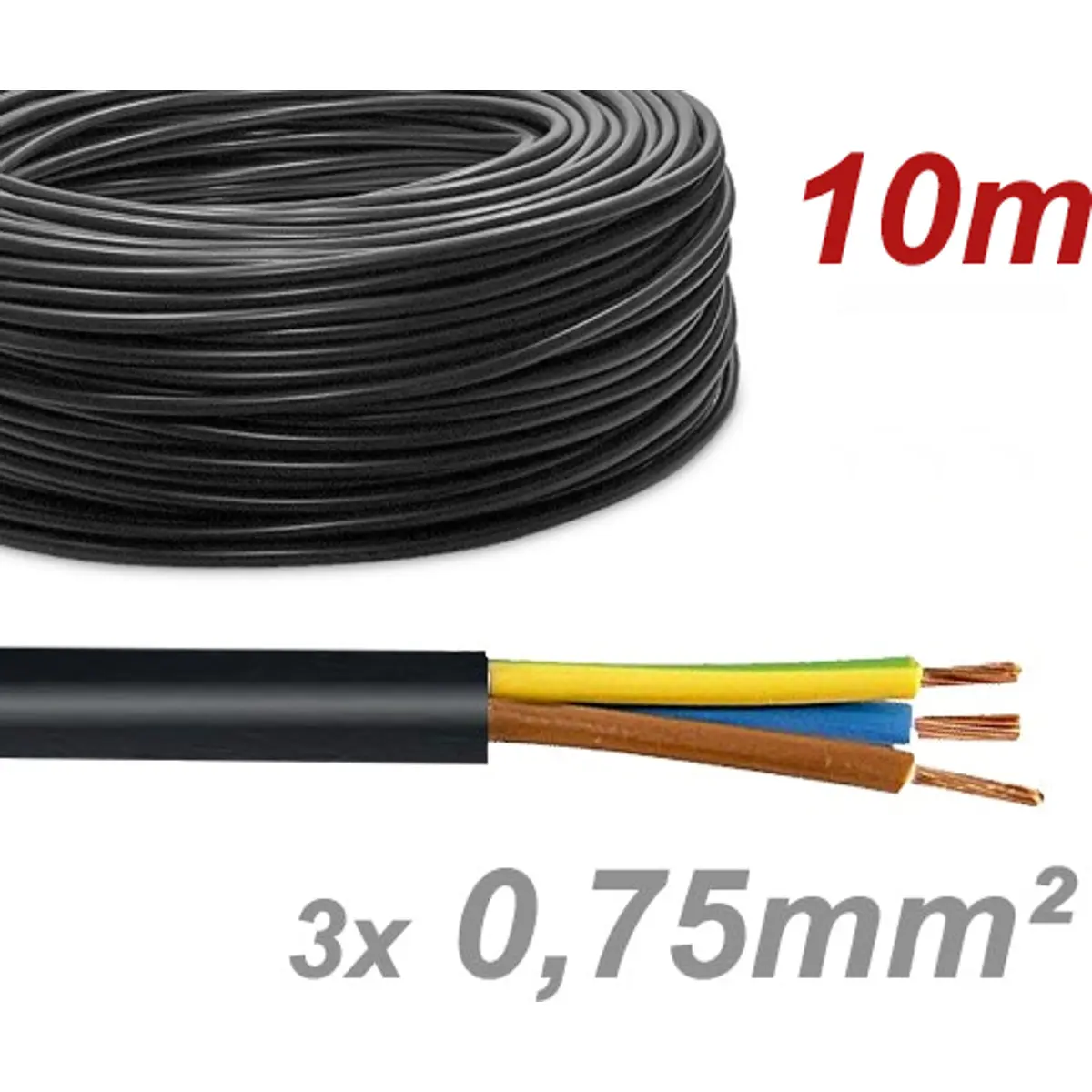 Cabo elétrico multifilar redondo FVV 3x0.75mm² preto - H05VV-F 3G0.75 (rolo de 10m)