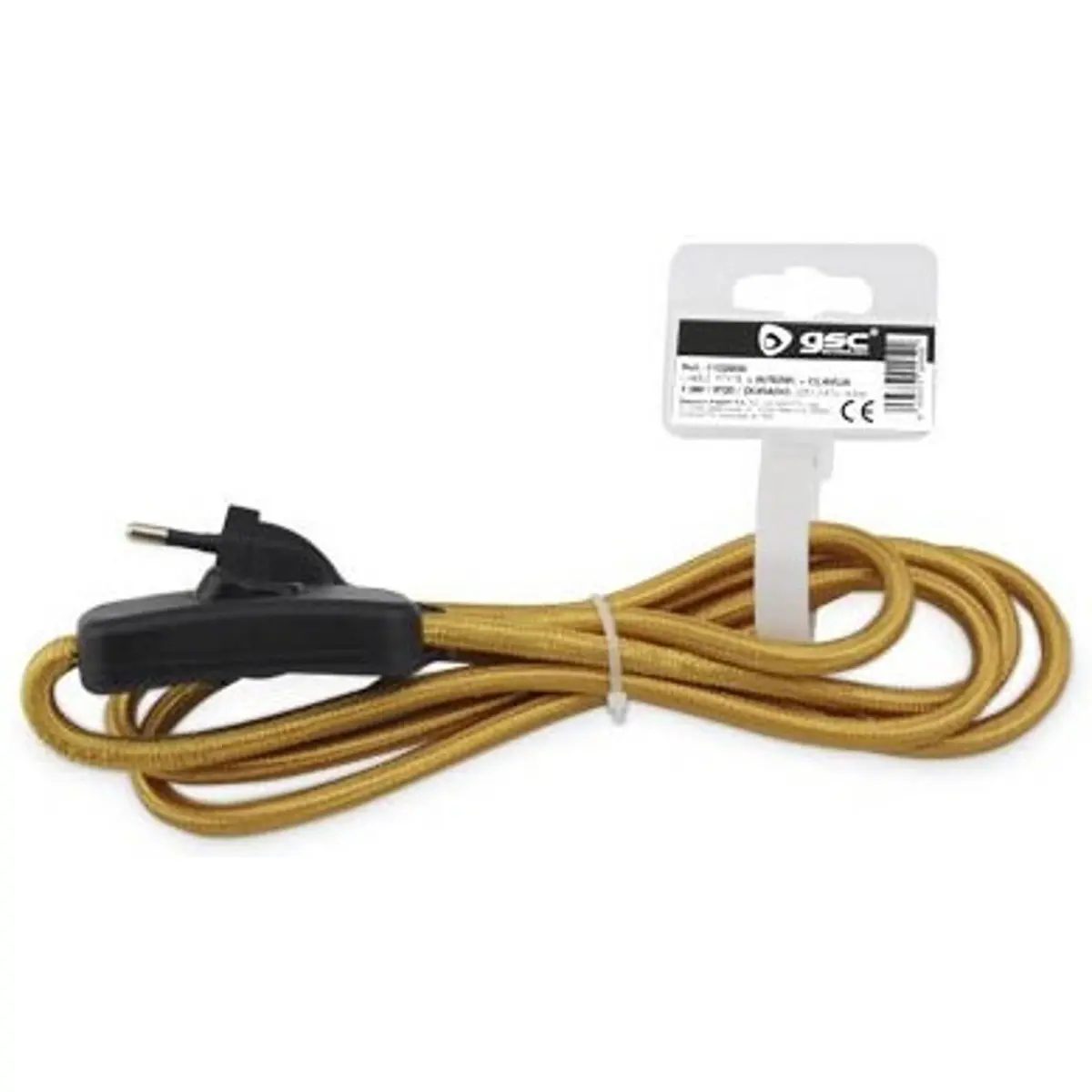 GSC Evolution 1102959 - Cabo têxtil (2x0.75mm) c/ interruptor e ficha Euro 1,5M - Dourado