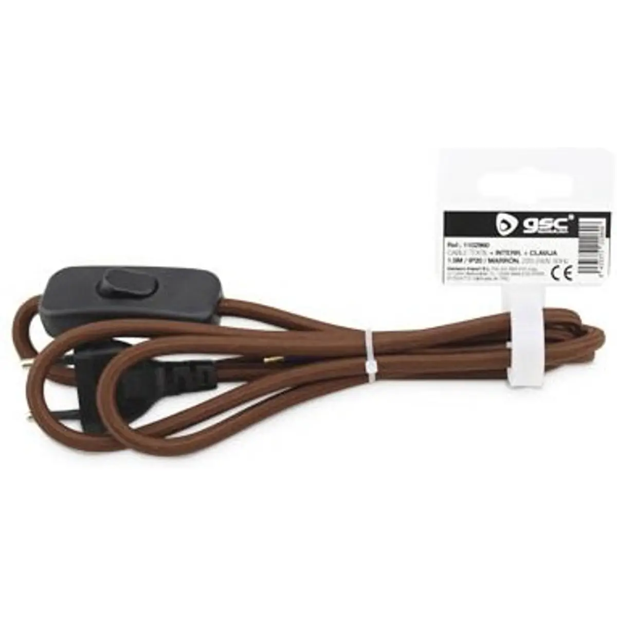 GSC Evolution 1102960 - Cabo têxtil (2x0.75mm) c/ interruptor e ficha Euro 1,5M - Castanho